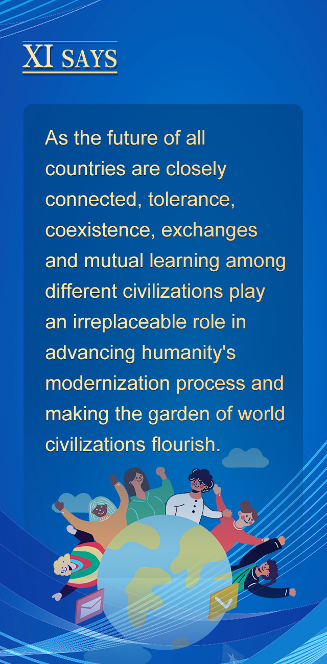 在各国前途命运紧密相连的今天,不同文明包容共存、交流互鉴,在推动人类社会现代化进程、繁荣世界文明百花园中具有不可替代的作用。