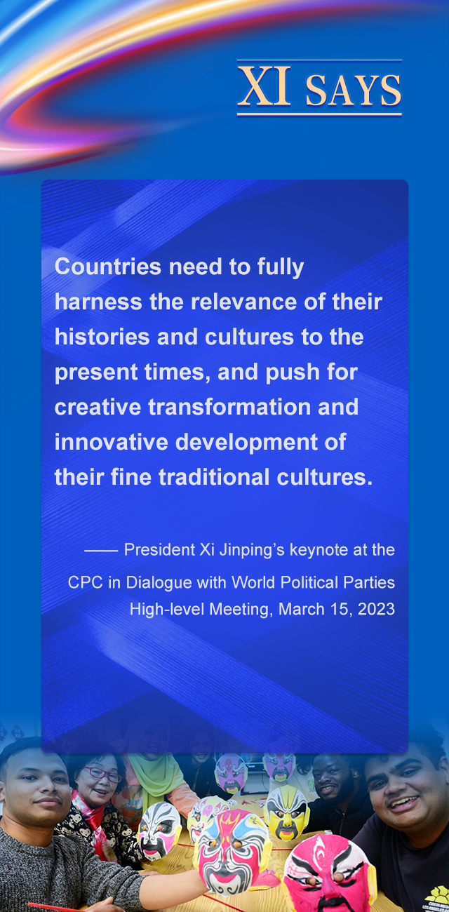 充分挖掘各国历史文化的时代价值,推动各国优秀传统文化在现代化进程中实现创造性转化、创新性发展。