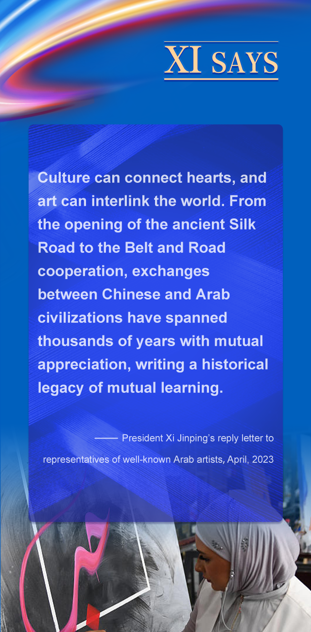 文化能够连接心灵,艺术可以沟通世界。从开辟古代丝绸之路到共建“一带一路”,中阿文明交流跨越千年、相互欣赏,书写了互学互鉴的历史佳话。