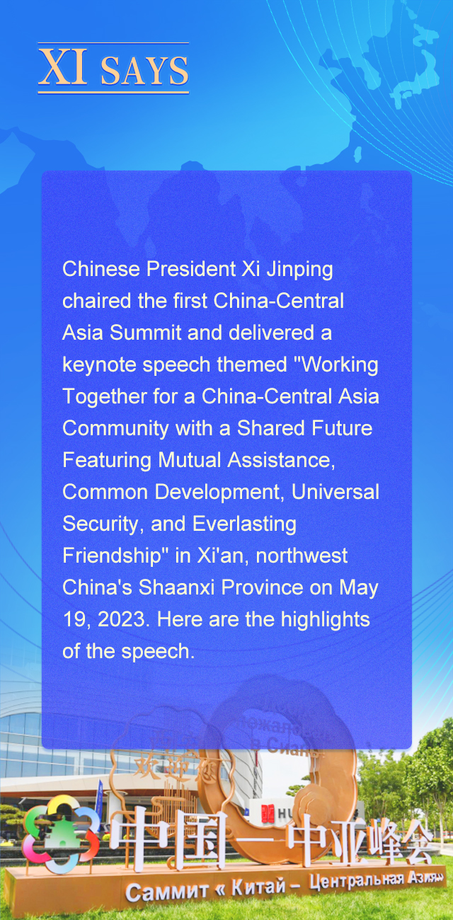 5月19日上午,国家主席习近平在陕西省西安市主持首届中国-中亚峰会并发表题为《携手建设守望相助、共同发展、普遍安全、世代友好的中国-中亚命运共同体》的主旨讲话。一起来学习本次讲话的重点。