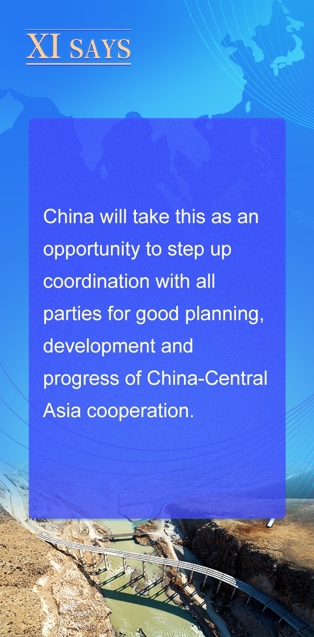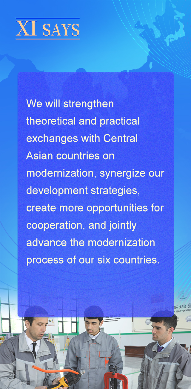 我们愿同中亚国家加强现代化理念和实践交流,推进发展战略对接,为合作创造更多机遇,协力推动六国现代化进程。