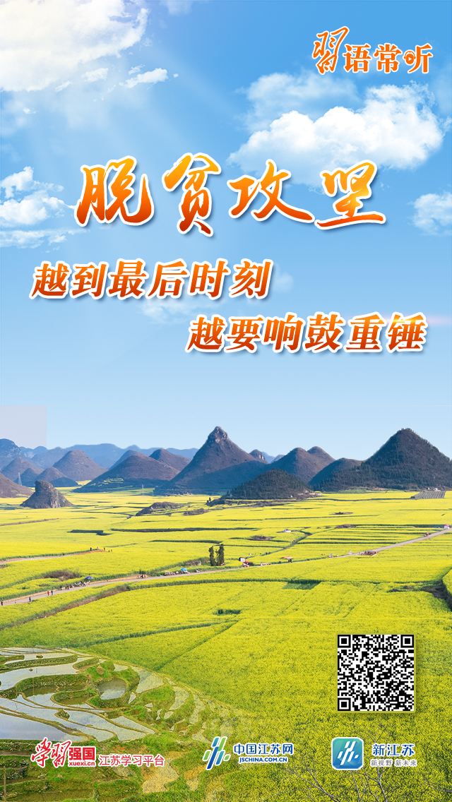 克服新冠肺炎疫情影响,凝心聚力打赢脱贫攻坚战,确保如期完成脱贫攻坚目标任务,确保全面建成小康社会,习近平总书记指出,到2020年现行标准下的农村贫困人口全部脱贫,是党中央向全国人民作出的郑重承诺。“脱贫攻坚越到最后时刻越要响鼓重锤!”“学习强国”江苏学习平台带您一同回顾习近平总书记那些重要讲话。