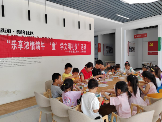 “小朋友们看向我,两臂合拢向前伸直,左手食指、中指、无名指、小拇指并拢,右手微曲……”在太和街道漫岗社区“乐享浓情端午‘童’学文明礼仪”活动现场,来自东苑新城幼儿园的老师正和来参加活动的小朋友们讲解汉服礼仪中最常见的揖礼。活动中,社区志愿者还为小朋友们准备了制作各式精美团扇的道具,让小朋友们在动手中体会“团善”美意,感受阖家团圆的美好祝愿。