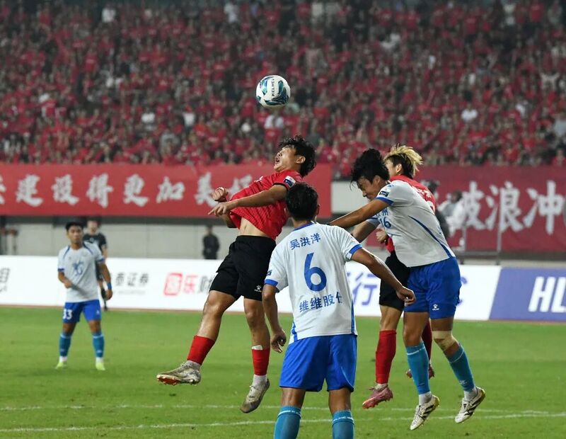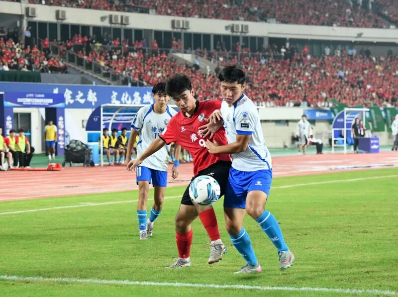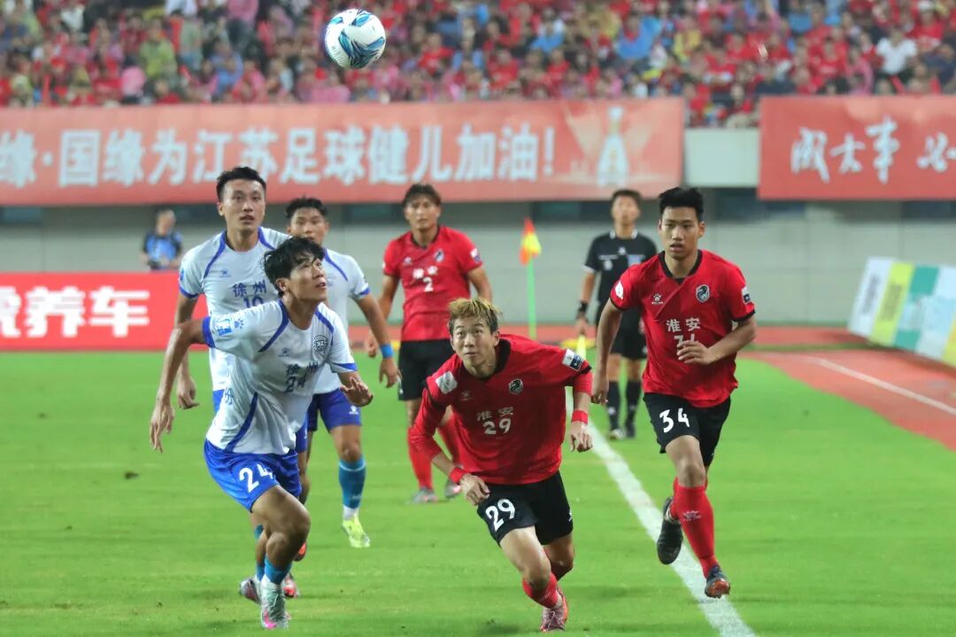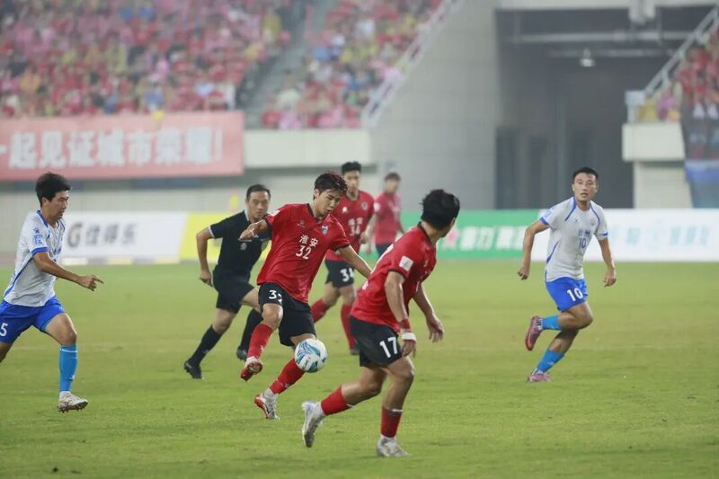 本轮焦点战在淮安队主场打响,由积15分处于晋级悬崖边的淮安队迎战积分榜次席的徐州队。对淮安队而言,这场“背水一战”堪称生死局,作为此前“四抢三”晋级混战中的关键一方,他们唯有保持不败才能掌握晋级主动权。比赛伊始,两队便展开激烈拼抢,攻防节奏紧凑。第23分钟,徐州队赵子杰一记劲射被淮安队门将李世恩奋力挡出,化解了门前危机。双方你来我往却均未打破僵局,上半场以0∶0握手言和。
