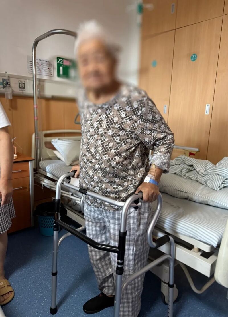 术后第2天,王奶奶已经能够在助行器的帮助下缓慢行走,脸上露出了久违的笑容。“以前疼得睡不着,现在能站起来走路,真是太感谢你们了!”老人拉着医生的手,激动地说道。家属也对治疗效果连连赞叹:“一开始我们特别担心,老人入院后,从手术到护理都做得特别好,现在老人能自己吃饭、简单活动,我们也放心多了。”此次对超高龄骨折患者的成功救治,不仅体现了我院多学科协作的高效与精准,更彰显了在高龄、高危患者诊疗领域的技术实力,为类似复杂病例的救治提供了宝贵经验。对于高龄患者而言,每一次手术都是一场与风险的较量,金湖县人民医院医护团队将始终秉持“生命至上”的信念,用精湛的技术、细致的护理,为老年患者的健康保驾护航,让他们在晚年依然能拥有高质量、有尊严的幸福生活。