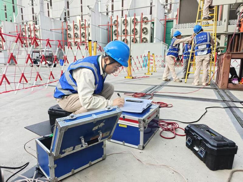 “检查试验接线是否正确,注意数据误差。”该公司现场换流变区域试验负责人史浩志密切关注试验进展。作为本次检修中风险最高、内容最复杂的项目,试验人员严把质量关,精准记录每一组数据,及时排查并处理潜在缺陷,将风险“控制在小,解决在早”,确保检修全过程安全可控,质量达标。
