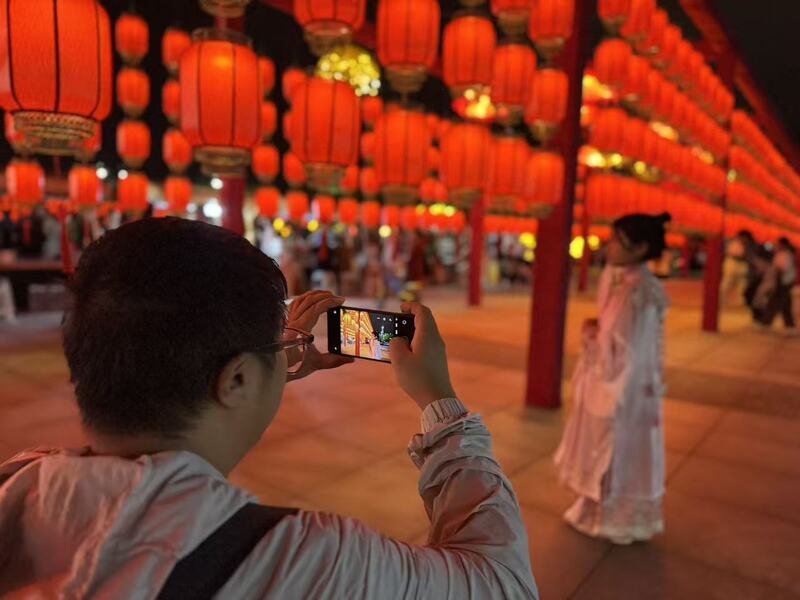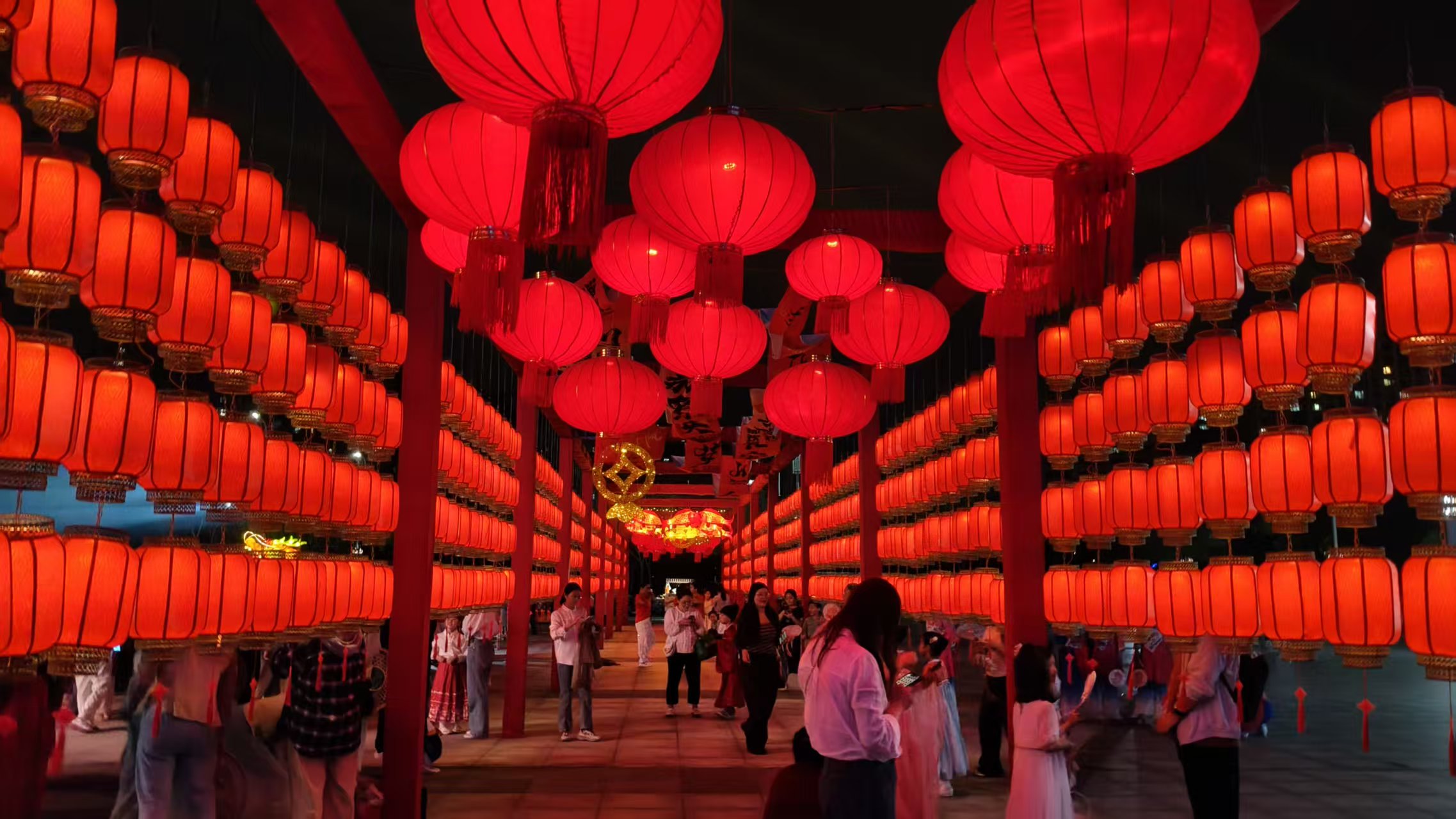 当晚活动现场氛围浓郁。红灯笼长廊沿广场两侧铺展,暖黄灯光映照游人笑颜;灵动的龙灯时而盘旋、时而舒展,引得孩子们追逐欢呼。舞台中央的 LED 屏上,循环播放着部分获奖作品的片段,伴随着悠扬古风乐曲,让整个广场都浸润在节日的喜庆与传统文化的典雅之中。