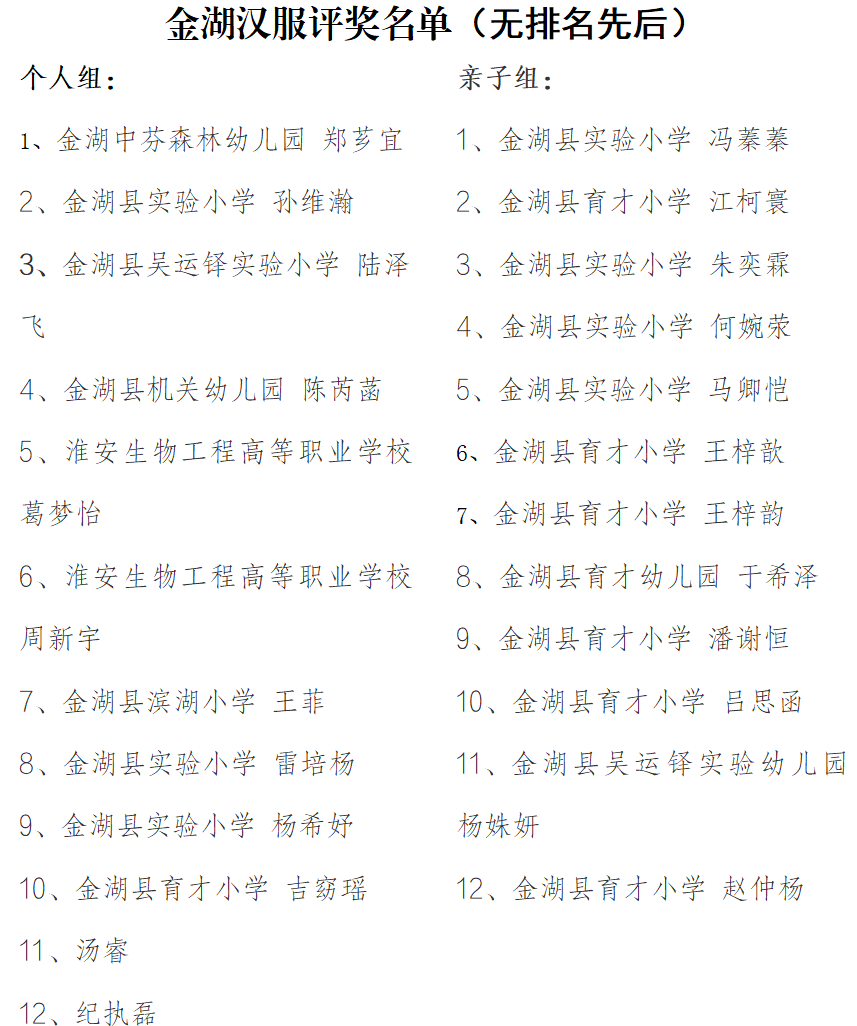 经过初选、网评两轮评审,最终 24 组优秀作品脱颖而出,其中“个人组”与“亲子组”各 12 组。获奖者年龄跨度惊人——最小的仅三四岁,扎着小辫、穿着迷你汉服上台领奖时惹得满场掌声;最大的则是一位 50 岁的“网红大叔”,他身穿汉服自拍自导,讲述金湖水文化,传递对家乡与传统文化的爱。这种年龄的多元参与,彰显了活动的广泛影响力,也印证了中华优秀传统文化穿越时光的独特魅力。