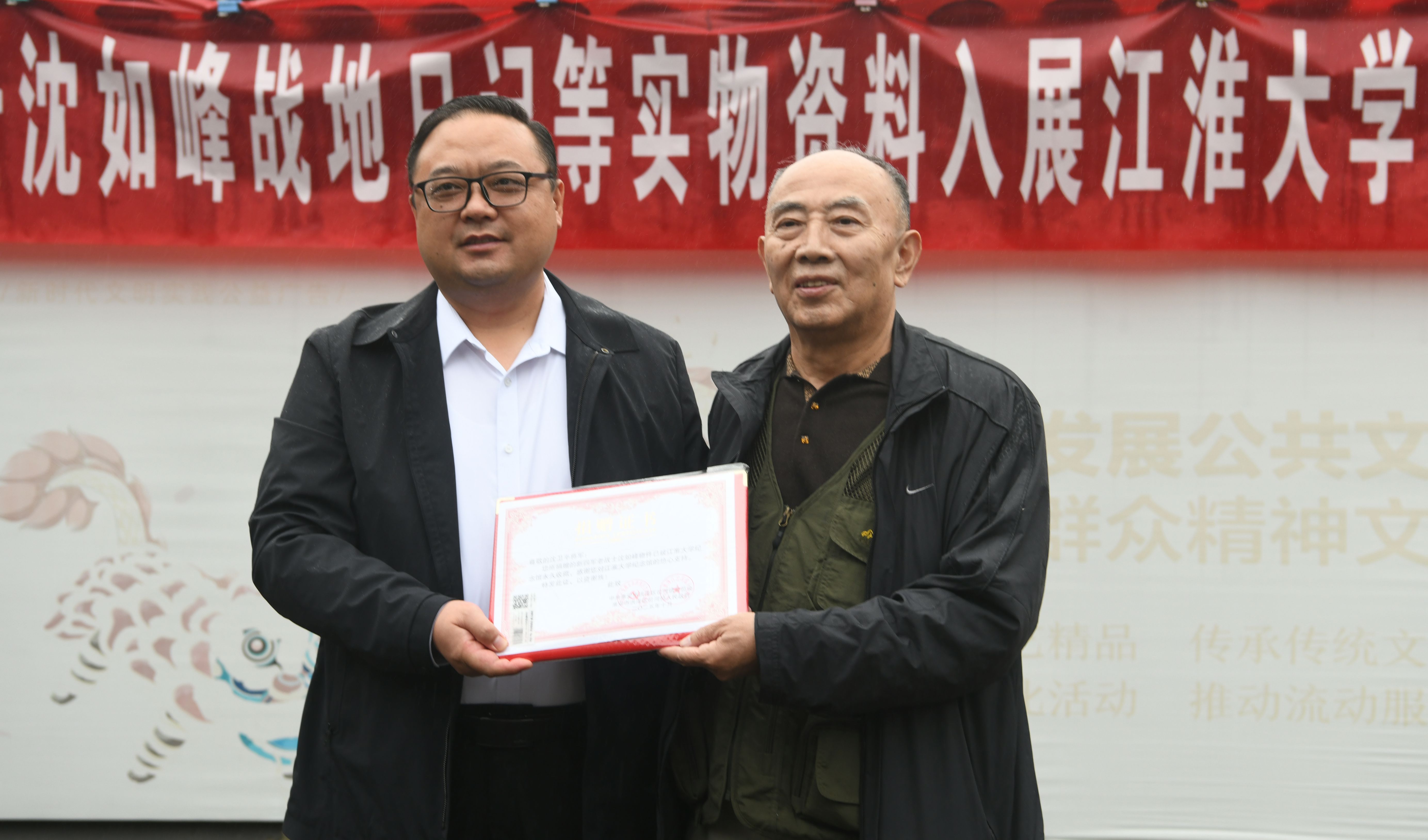 10月13日,原新四军江淮大学学员沈如峰、王萍夫妇的次子沈卫平从北京抵达淮安市洪泽区岔河镇,向江淮大学史料陈列馆捐赠了其父亲的珍贵遗物。捐赠品包括由其父战地日记整理出版的《我的解放战争——一个三野战地记者的战地日记》一书、手稿复印件(原件藏于国家博物馆)及历史照片等。