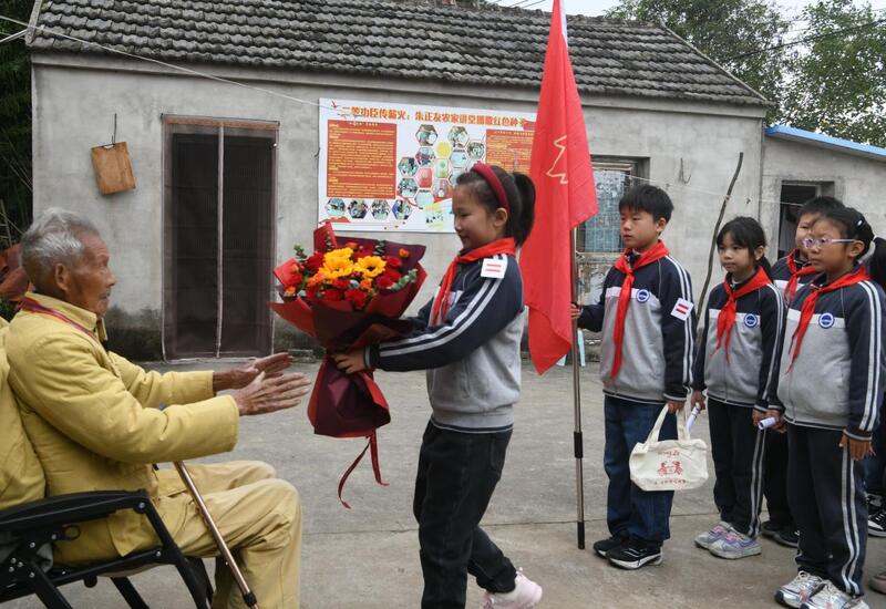 活动中,朱老与少先队员们进行了亲切互动,解答疑问,让孩子们进一步了解了那段烽火岁月。少先队员们还为朱老表演了文艺节目,并送上了亲手制作的手工礼物,表达对英雄的崇高敬意。