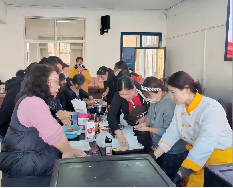 西式面点课上,专业讲师从原料特性、配比到工具使用,一步步演示曲奇、蛋挞制作全流程,学员们围坐操作台揉面、塑形、烘烤,面对面交流学习,很快掌握了技能。学员赵女士高兴地说:“一直想开个蛋糕店,这次培训后,我信心更足了!”