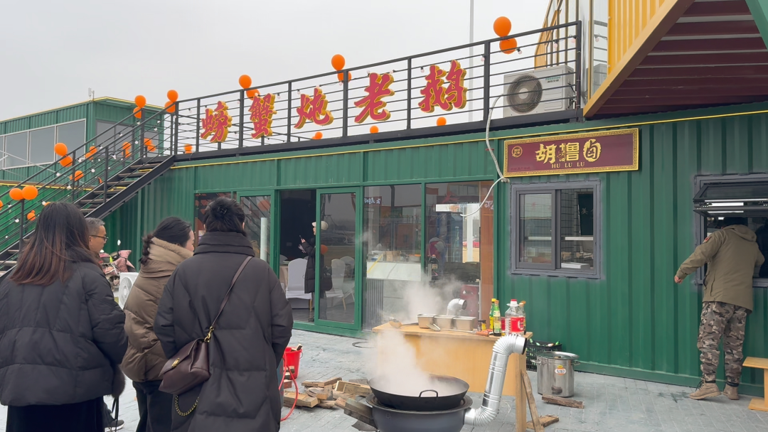 白天,活动丰富多彩。渔火游园会里,龙腾狮跃,锣鼓喧天,游客们可以在钱庄兑换特色“银票”,参与滚铁环、投壶等游戏,重温童趣,还可以选购新鲜猪肉等年货。石屋成为新春打卡新地标,石屋豆坊的醇香、吊炉火锅的暖意、咖啡屋的雅致各有千秋。累了就在热气蒸腾的露天温泉中放松身心,享受冬日里的温暖时刻。