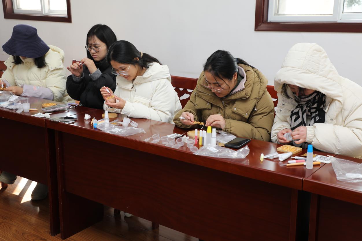 活动现场年味浓厚,志愿者结合视频,讲解了掐丝珐琅的制作工序,演示了掐丝、点蓝的关键技巧,耐心解答群众疑问,助力大家快速掌握操作方法。体验环节中,大家热情高涨,在志愿者指导下,动手弯折铜丝、填充彩砂,勾勒出骏马、福字等马年吉祥图案。大家相互协助、认真创作,现场氛围温馨热烈。经过一番精心制作,一件件色彩鲜艳的掐丝珐琅作品陆续完成,既展现了非遗美感,也寄托了大家对马年的美好期盼,大家手持作品拍照留念,收获满满。