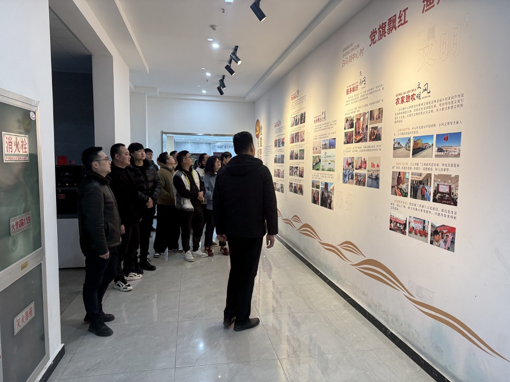 恳谈会首个环节,村“两委”带领与会成功人士代表实地参观白马湖村村部,详细介绍村部党群服务、日常治理、便民服务等功能布局与运行情况,让代表们直观感受村级组织建设的新提升、新变化,体会家乡基层治理的坚实根基。