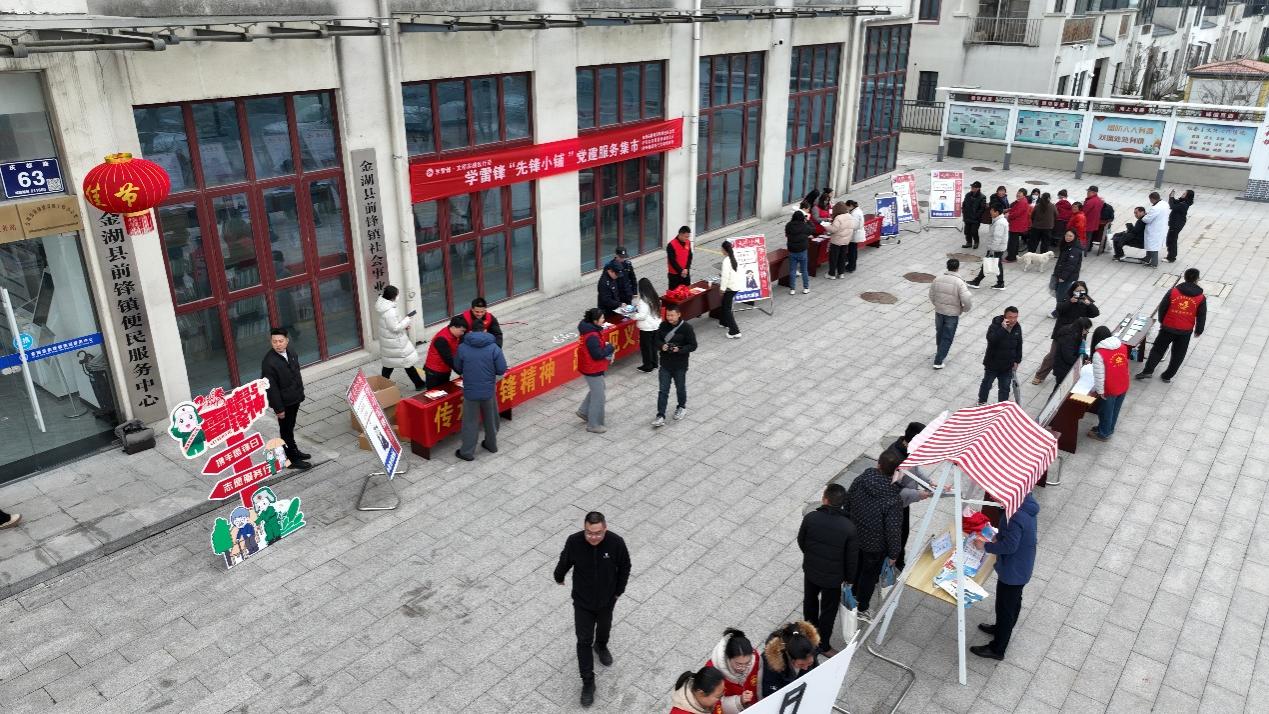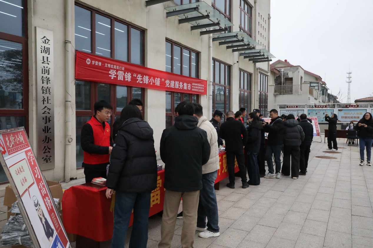 3月5日上午,金湖县前锋镇新时代文明实践所广场人头攒动、暖意融融。在学雷锋纪念日之际,2026年“先锋小铺”党建服务集市热闹开市。活动以“党组织搭台、志愿者摆摊、群众赶集受益”的模式,将精准化、多样化的志愿服务送到群众“家门口”,用实干践行雷锋精神,用温情传递党心民心。