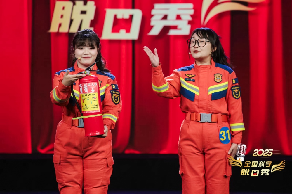 2025年12月7日,2025全国科学脱口秀大赛在南京举行。比赛现场,来自全国各地的高手云集,竞争异常激烈。当主持人问道“你们准备好了吗”。当她们下意识瞥见身上那身醒目的橙色抢险救援服时,一种强烈的职业使命感油然而生。“这里虽然是科普舞台,但同样是我们消防宣传员的战斗岗位!”这一刻,紧张烟消云散,唯有坚定与从容。