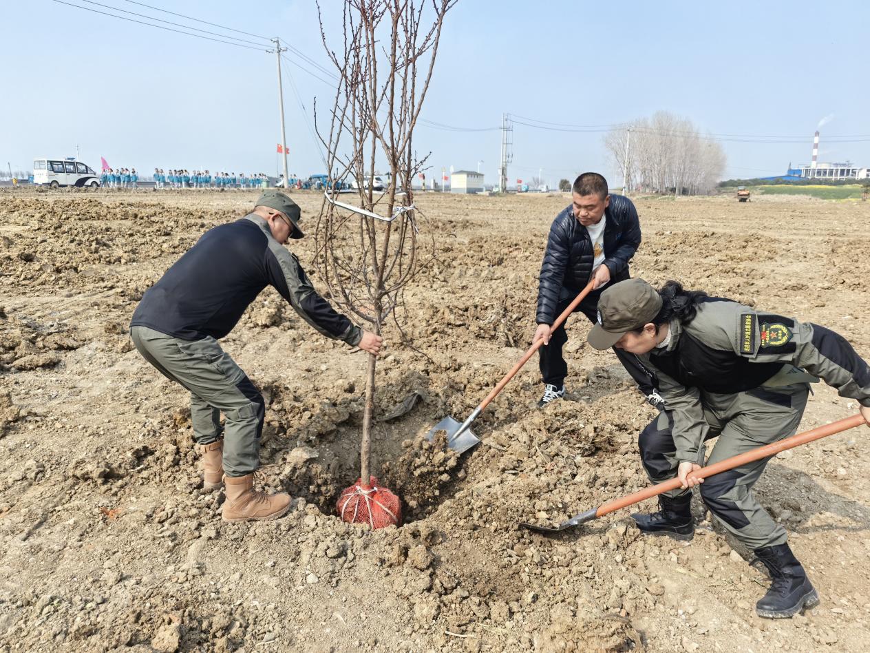同日,在洪泽湖大堤,退役军人和邮储银行的志愿者们也挥锹铲土、扶苗填坑,动作干净利落。大家分工协作、配合默契,精心栽种每一株新苗。经过两个多小时劳动,洪泽湖畔再添新绿。
