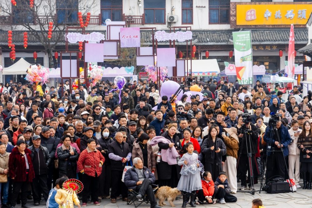 老街片区闹中取静,别具韵味。小型非遗互动摊位依次排布,糖画、剪纸等传统老手艺现场展演,吸引不少家长带着孩子驻足体验,让孩子们近距离感受传统非遗技艺的独特魅力,在互动中传承民俗文化。