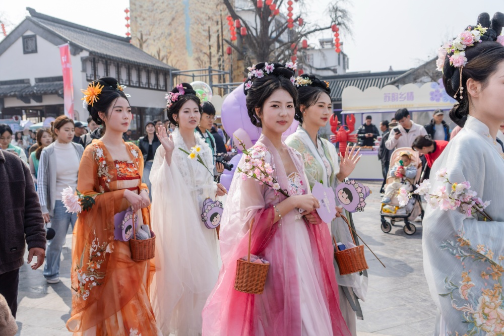 街区内各类亲子互动项目也格外接地气,泡泡秀引得小朋友们追逐嬉戏,智能机器人、机器狗萌态尽显,深受亲子家庭喜爱。此外,十二花神、西游主题工作人员沿街巡游,遇到游客主动停下合影留念,互动感拉满,整个古镇处处洋溢着欢声笑语,热闹氛围直达顶峰。