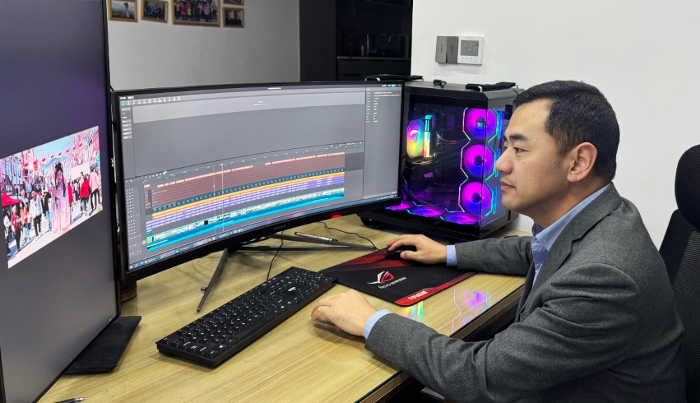 为捕捉每一块“拼图”的最佳状态,他常常起早贪黑、放弃节假日:凌晨四点蹲守湖边,只为定格第一缕晨光洒向湖面的瞬间,补齐“洪泽日出”的拼图。深夜伏案打磨视频,反复调整镜头衔接,让每一块“拼图”都完美契合。马年春节期间,他借春晚热度连夜推出家乡年味短视频,拼接起洪泽的烟火之美,收获好评如潮。