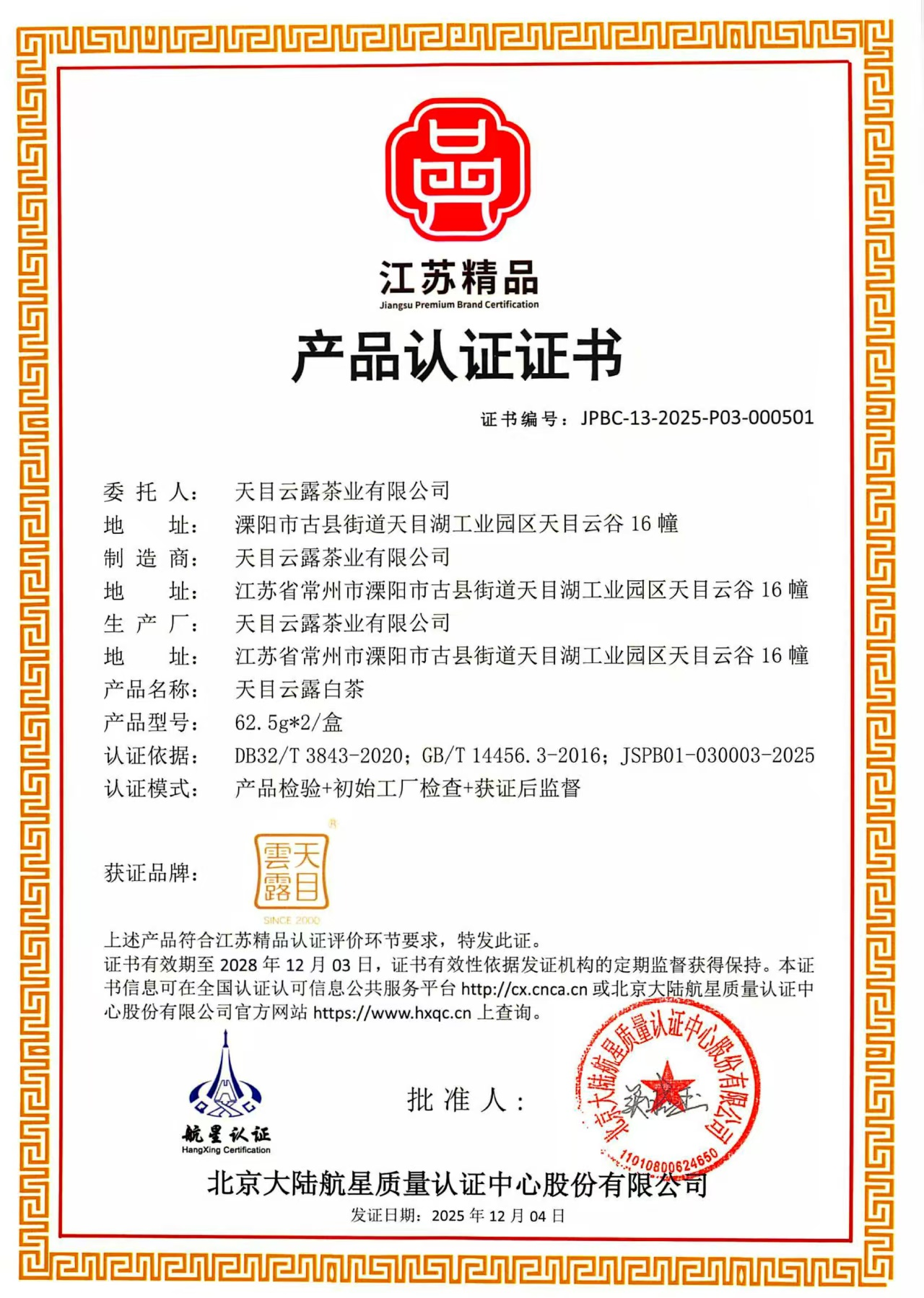 “江苏精品”认证以“国内领先、国际一流”为核心目标,其评审标准涵盖产业规模、质量体系、创新能力、环保合规等多重维度,要求申报主体近三年无质量安全事故、执行标准具有先进性,仅农业领域就要求种植基地连片面积达百亩以上,且需建立完善的质量管理体系。天目云露能获此殊荣,源于其二十余年如一日对品质的极致追求。