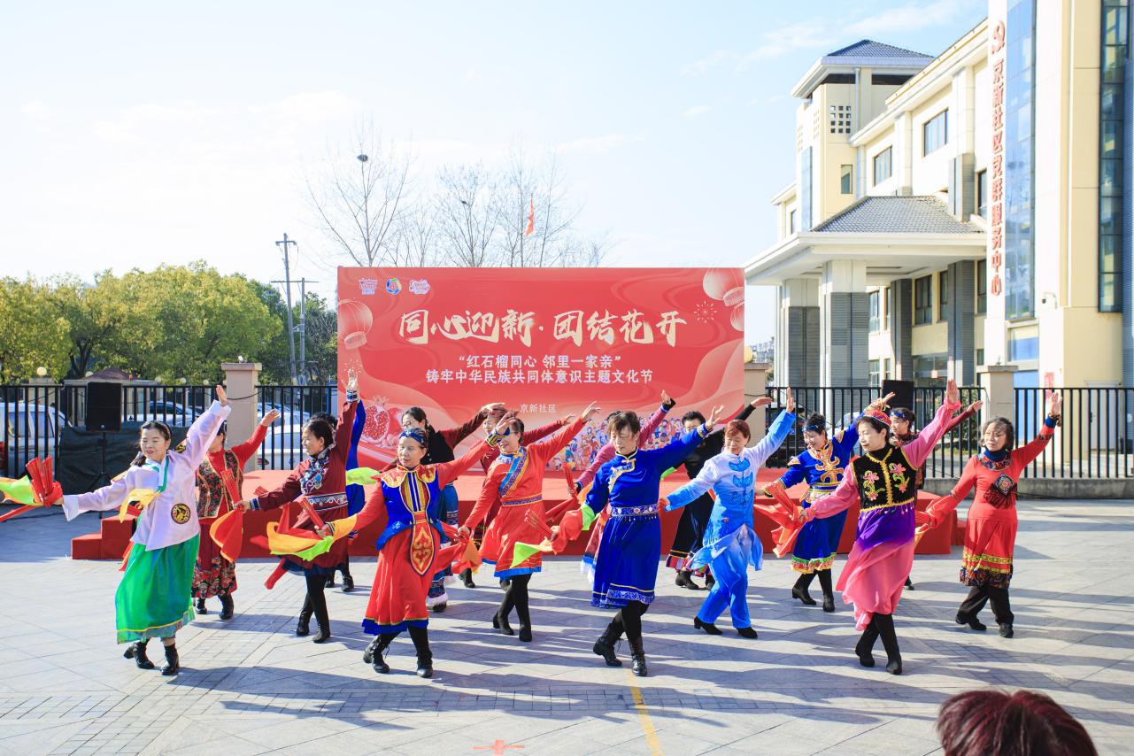 近日,南京江北新区沿江街道红石榴家园“同心迎新·团结花开——红石榴同心 邻里一家亲”主题文化节在京新广场盛大开幕。活动以沉浸式文化体验、互动式项目参与、暖心式便民服务为主线,吸引了各民族居民踊跃参与,大家在冬日暖阳的映照下,携手共谱一曲邻里相亲、守望相助的团结乐章。