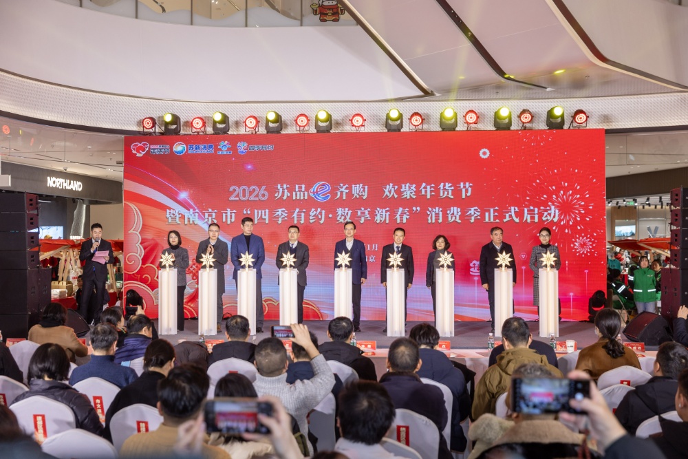 新华报业·中国江苏网讯(记者 李旸)骏马踏春送福,年味遍染江淮。1月23日,2026“苏品e齐购 欢聚年货节”暨南京市“四季有约・数享新春”消费季启动仪式在南京盛大举行。本次活动紧扣商务部“2026全国网上年货节”工作要求,秉持“政府指导、企业为主、市场化运作”原则,串联腊八至元宵节关键消费节点,联动全省优质资源,打造出一场覆盖全域、融合多元、兼具传统韵味与创新活力的消费盛宴,为江苏消费提质升级注入强劲动力,充分彰显“苏品苏货”的品牌魅力与全省消费市场的蓬勃生机。