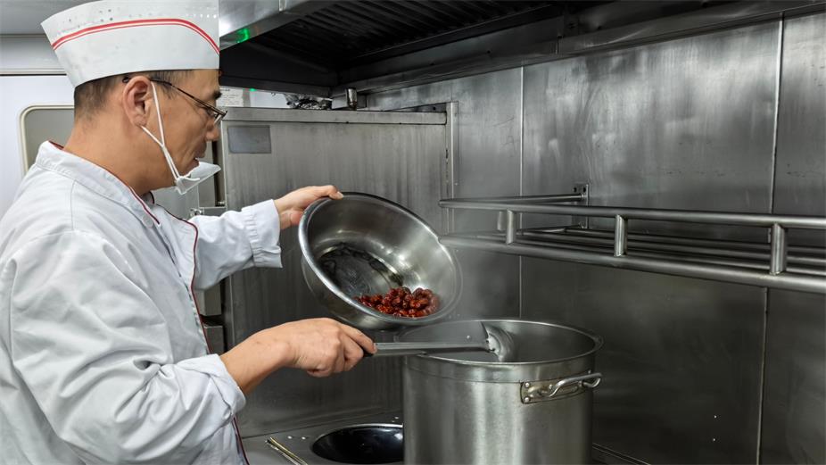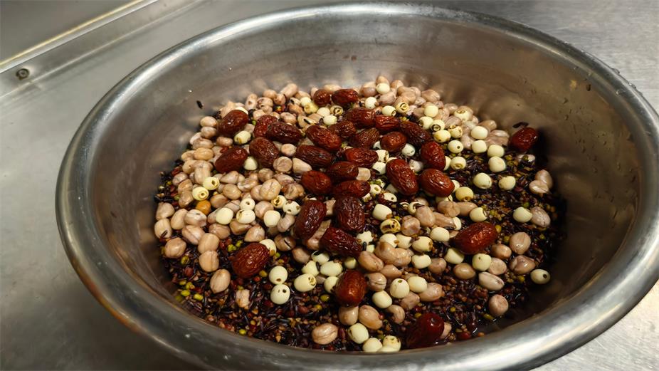 为保证粥品口感醇厚、营养均衡,腊八节当天,餐车服务人员凌晨4点便早早地开始了各项准备,精选糯米、红豆、红枣、桂圆、莲子等八种食材,经过淘洗、浸泡、慢炖等多道工序,只为呈现一碗软糯香甜的腊八粥。
