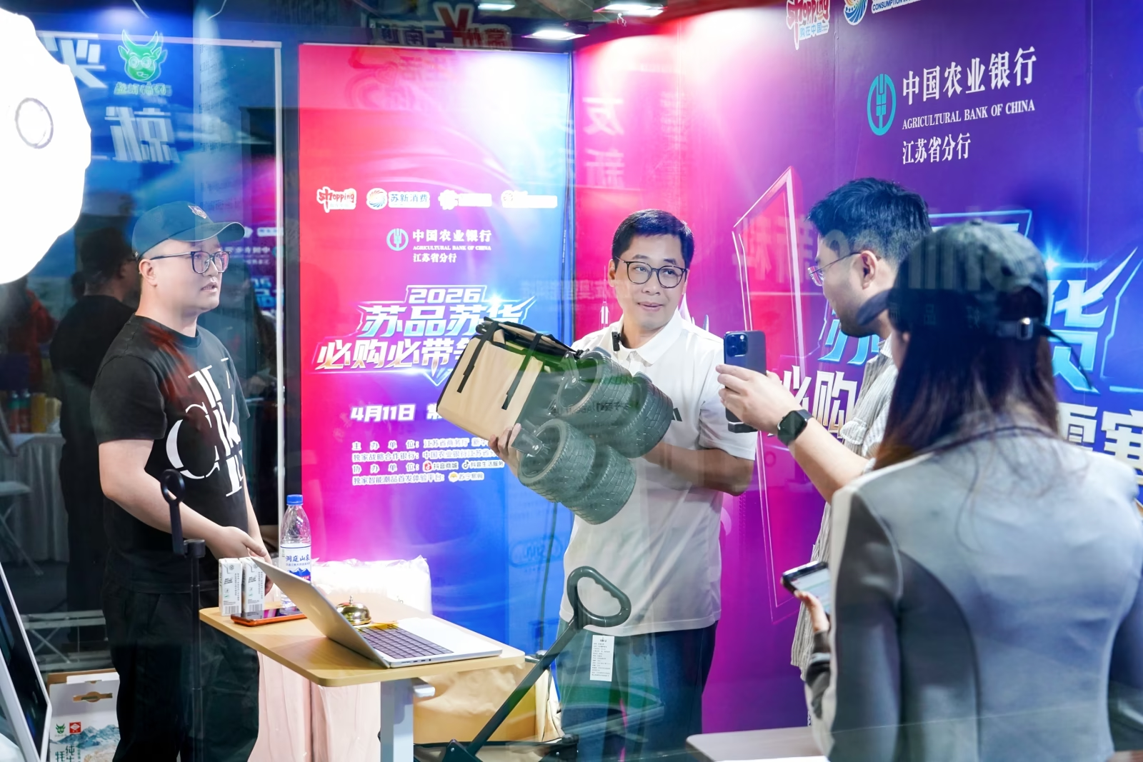 本次活动由江苏省商务厅、新华报业传媒集团联合主办,交汇点大平台承办,中国农业银行江苏省分行担任独家战略合作银行,抖音商城、抖音生活服务协办,苏宁易购为独家智能潮品首发体验平台。江苏省商务厅厅长司勇、新华报业传媒集团董事长双传学、中国农业银行江苏省分行副行长陈鹏、常州市副市长潘冬玲等领导出席活动,与现场观众共同感受江苏好物的独特魅力与消费市场蓬勃生机。