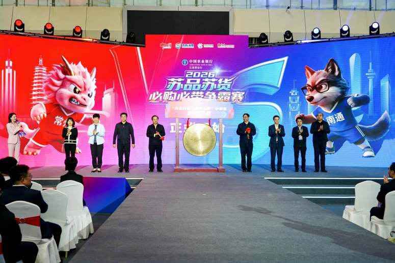 新华报业·中国江苏网讯 4月11日,首届“苏品苏货·必购必带”争霸赛揭幕战在常州奥体中心会展中心火热启幕。本次揭幕战以常州VS南通双城对决为核心,汇聚全省优质好物同台竞秀,线上线下同频发力,全面激活江苏消费市场新活力,奏响“苏品苏货”品牌强音。