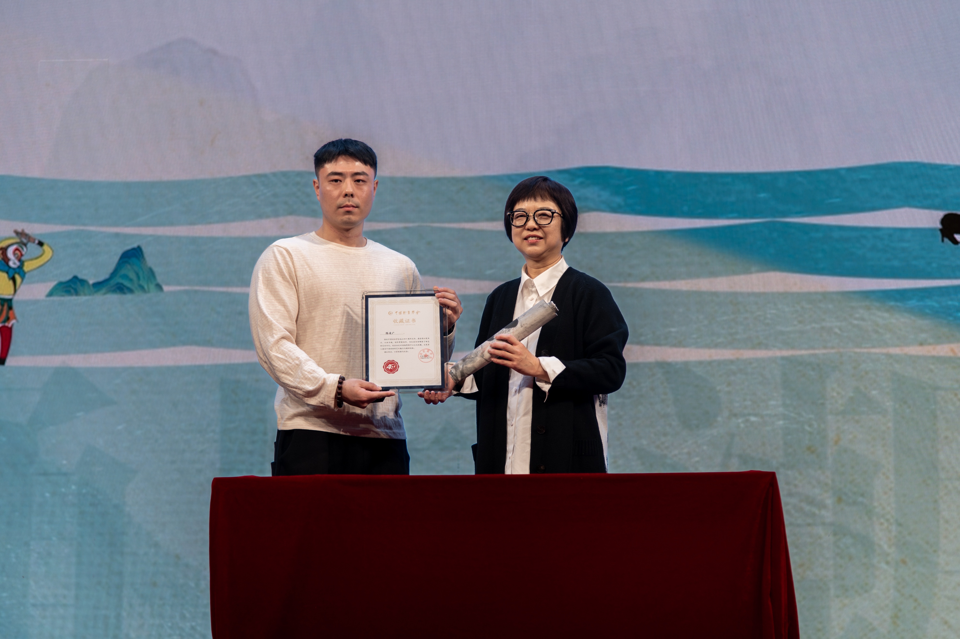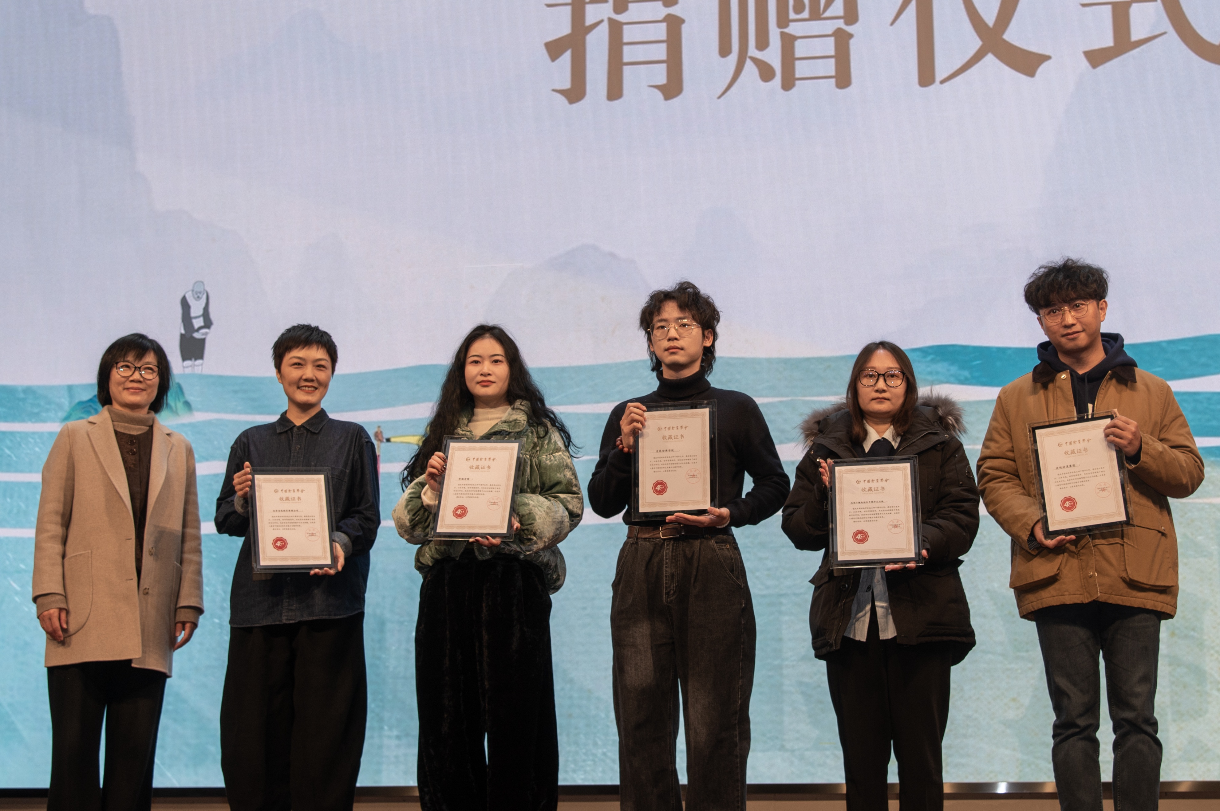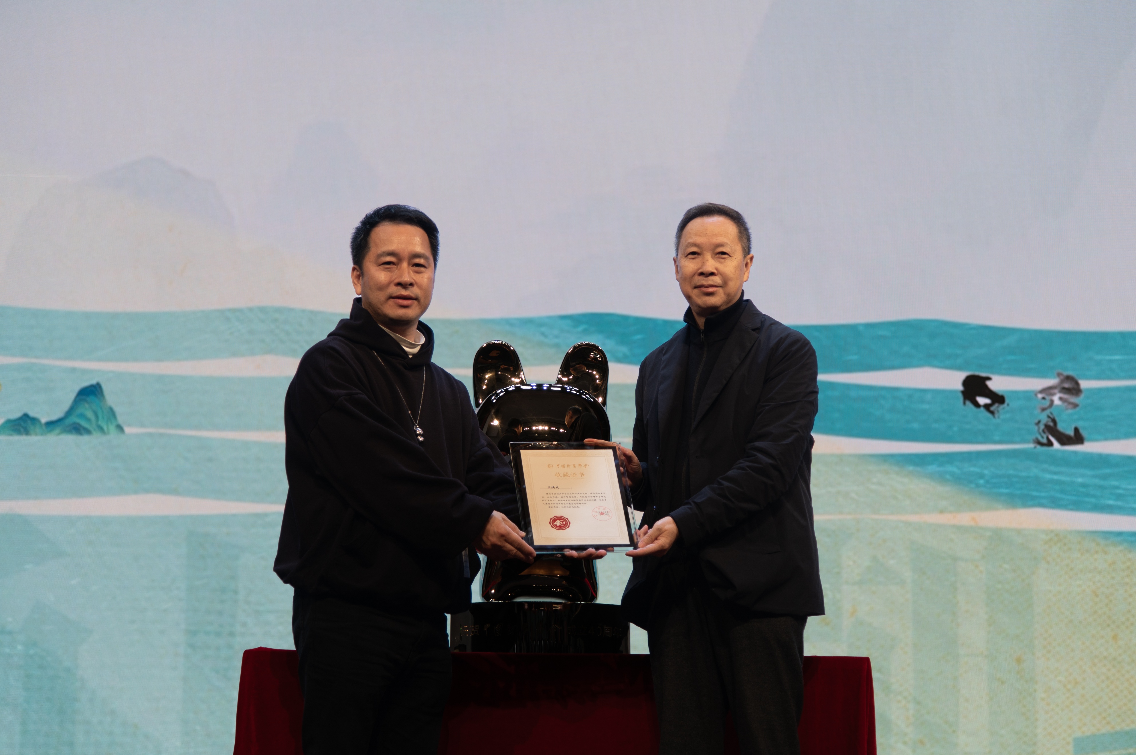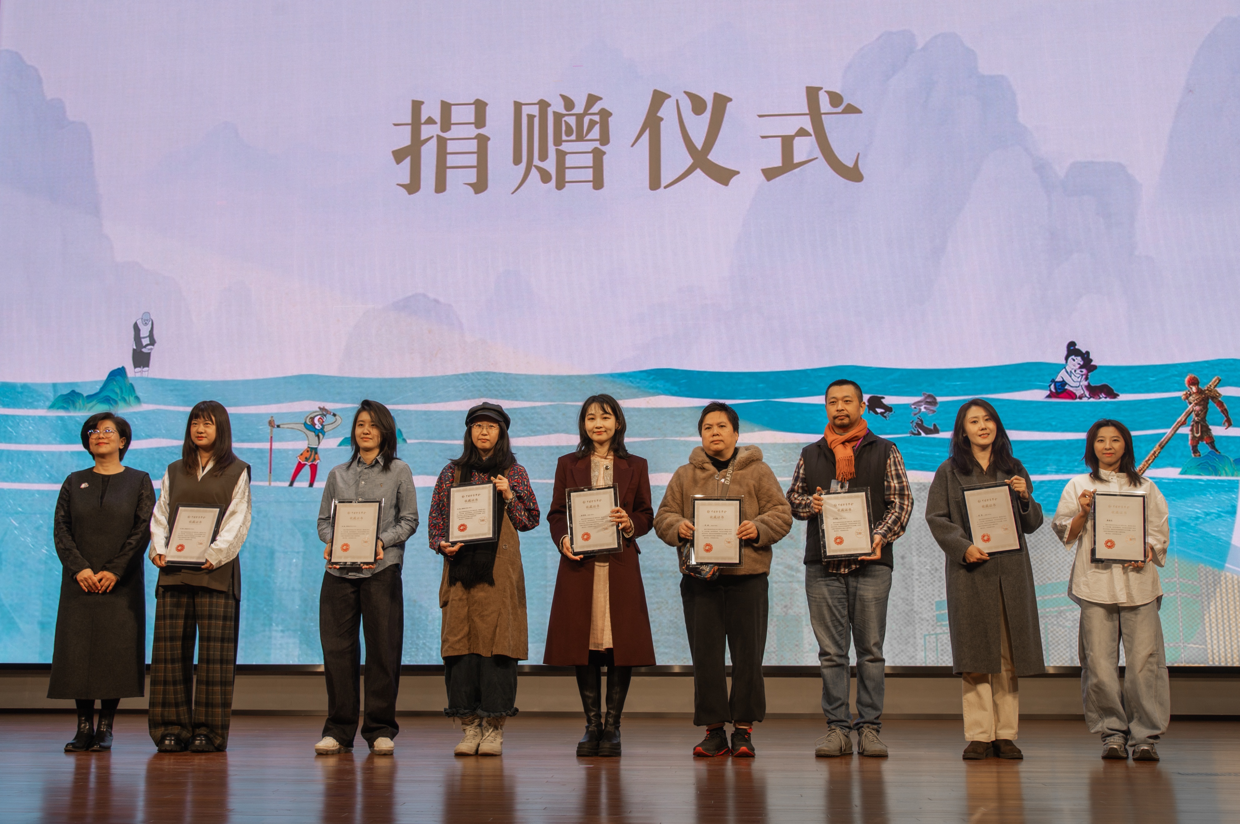 开幕式上还举行了捐赠仪式。王立军、祁娇娜捐赠了《花木兰》豫剧绘本作品,陈凌广教授通过陈子坤捐赠以凌霄花为主题的艺术作品,王焕武带来了原创IP“小武兔”艺术装置。这些作品承载着艺术价值与文化内涵,为中国动画的传承与创新注入新的活力。现场还为多位捐赠者颁发了证书,以凝聚社会共识,共同推动动漫产业的可持续发展。
