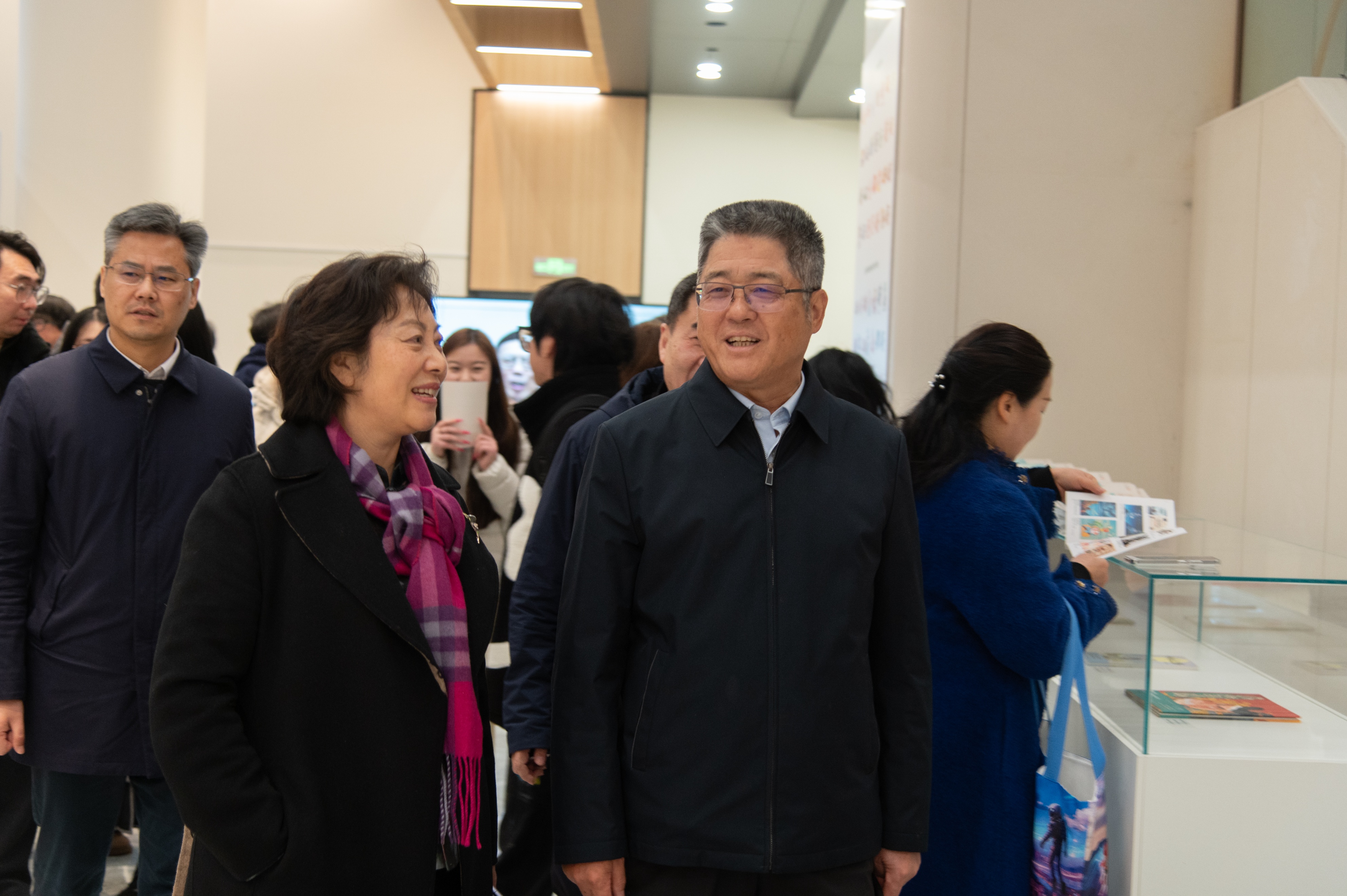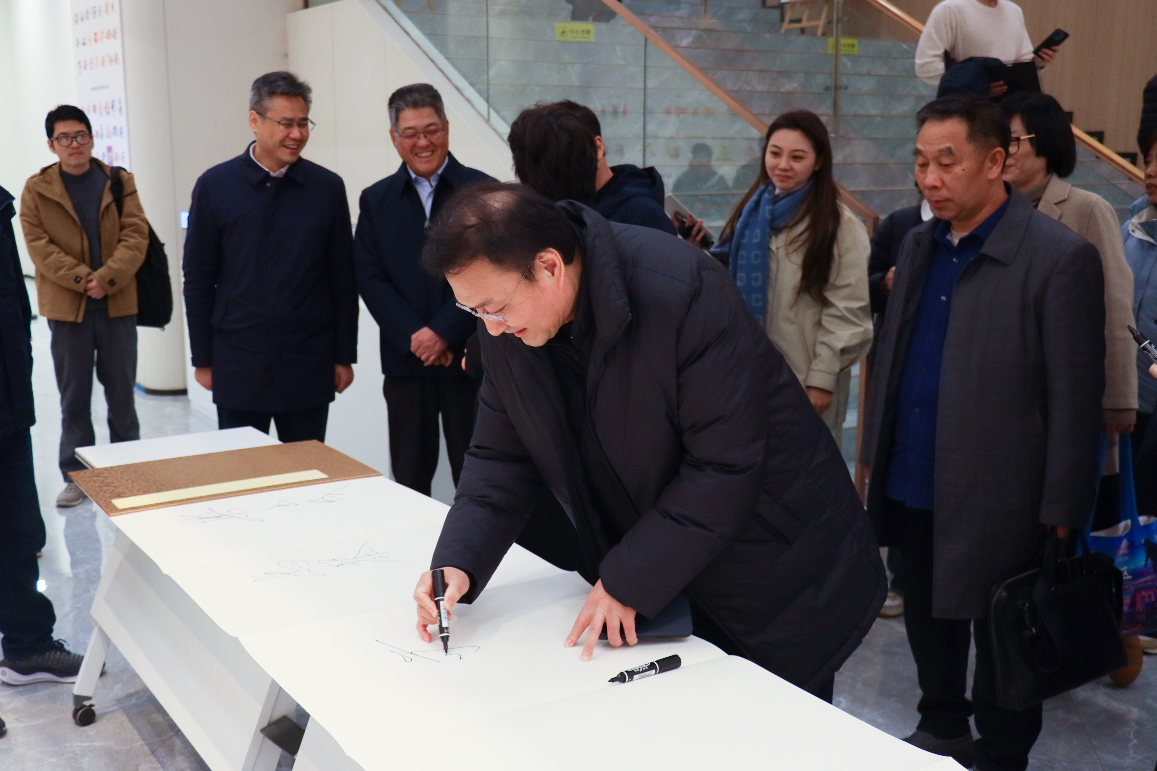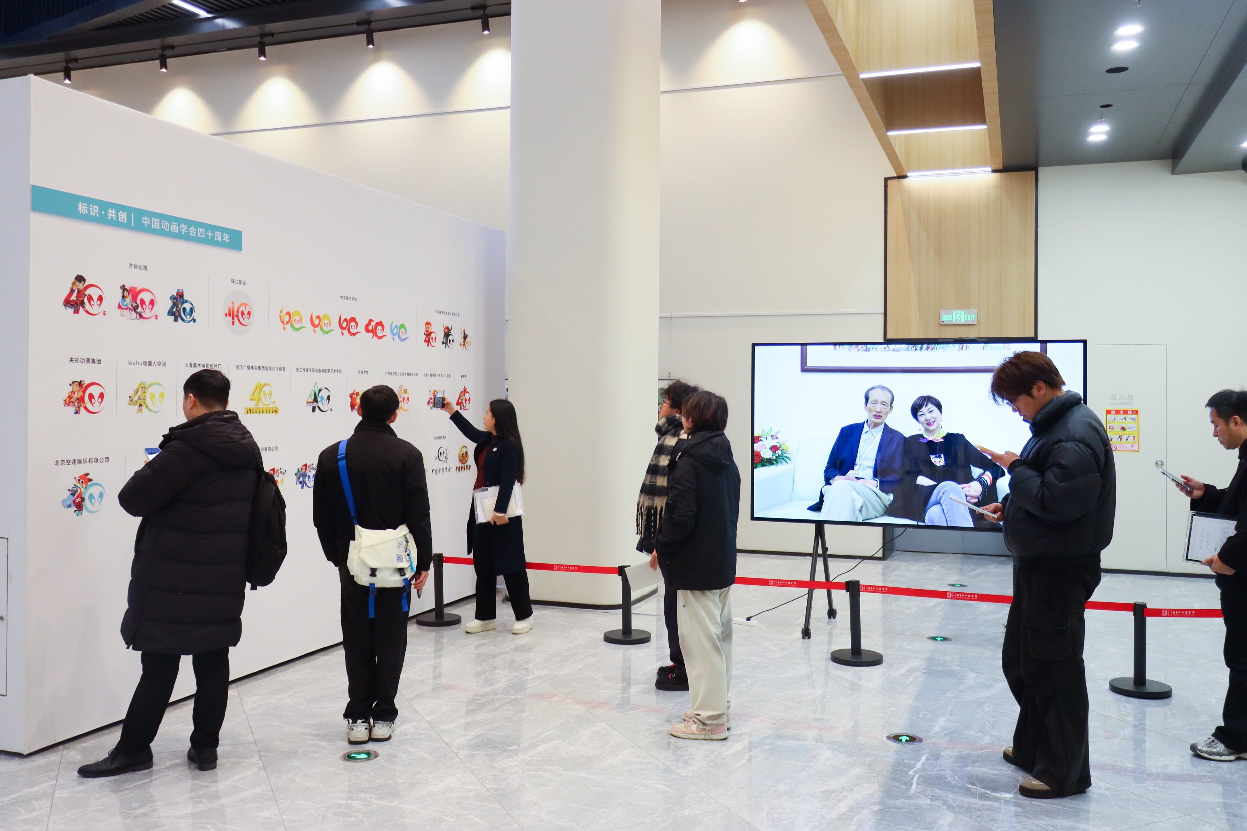开幕式结束后,与会嘉宾赴南京江北图书馆(新馆)负一层定山艺术空间观展,签名留念并与创作者代表合影。观展过程中,众人循着“学科源流”“创作者谱系”“技术演进”“未来愿景”四大板块有序参观。