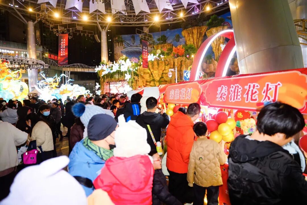 在南京江北新区泰山街道桥北商圈,由秦淮制灯老艺人带来的彩灯将这里装点成梦幻天地,商圈市集内人流如织,欢声不断。