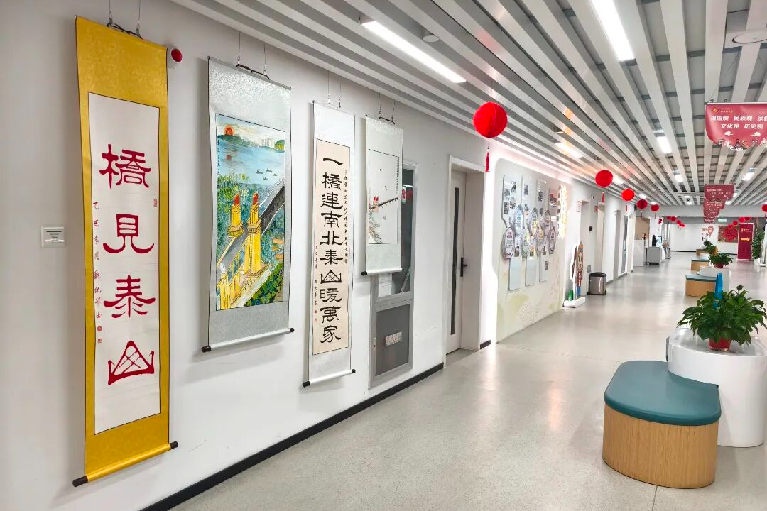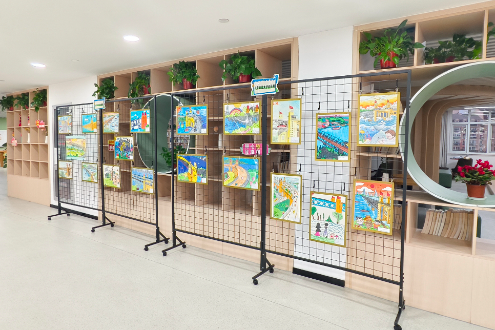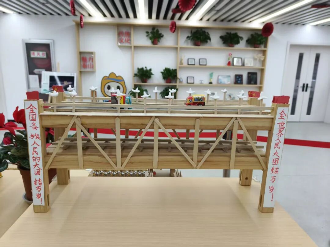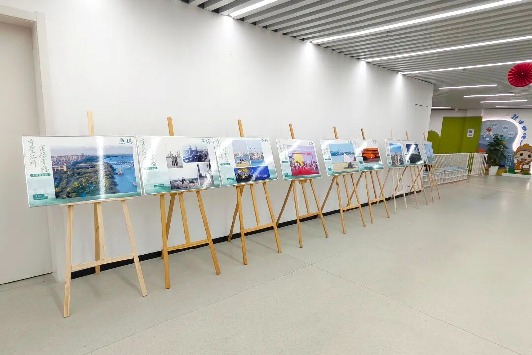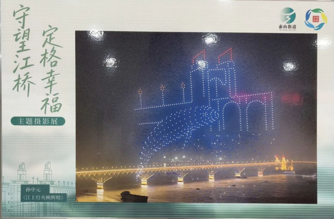 展陈见真情,文化润人心。展览现场不仅有宏大的历史叙事,更有充满温度的全民创作展区,四组特色作品让大桥精神以更鲜活的方式触达人心。琅小明发滨江分校、津浦幼儿园的孩子们用烂漫色彩绘制长江大桥,将童真向往融入画笔;该校“桥梁兴趣班”的学生则巧手搭建大桥模型,在结构与材质的探索中践行学思践悟的探索精神;“守望江桥 定格幸福”摄影展收录了泰山街道居民的作品,既记录大桥四季流转的风景,也留存了人与桥相伴的温暖日常;泰山书法队的书画作品墨韵抒怀,其中 90 岁长者创作的大桥水墨画,更将几代人的集体记忆与家国情怀浓缩于笔墨之间。