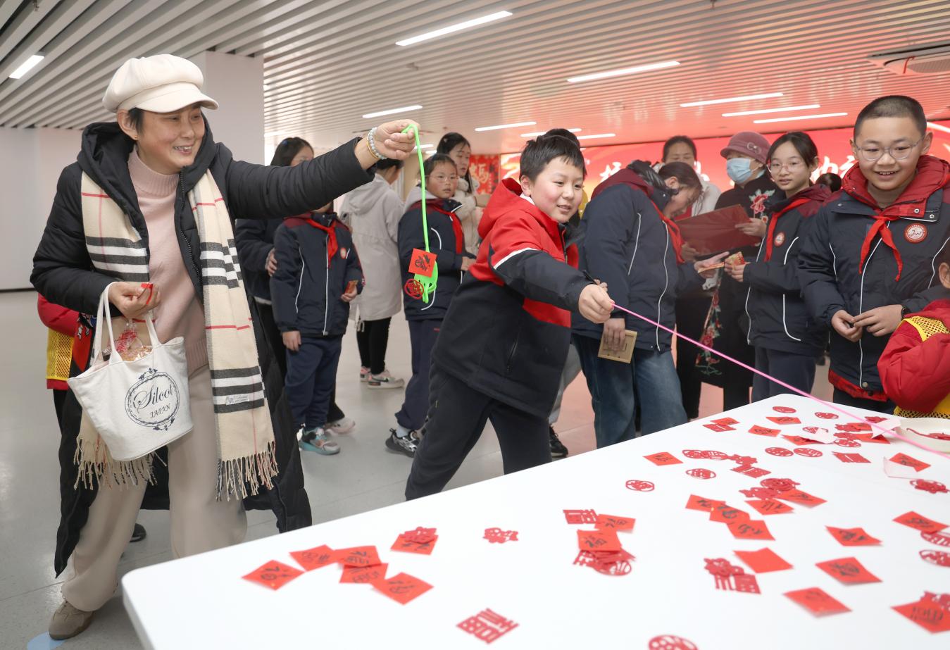 游戏区则是全场的欢乐主场,欢笑声此起彼伏。粘粘福气、策马奔腾、欢乐投壶等趣味游戏,让大人小孩都乐在其中,在互动比拼中收获满满喜悦,各式游戏的美好寓意更让现场年味与福气交织。独具本地特色的知识拼贴互动,还让居民们在趣味答题中重温南京长江大桥与泰山街道的历史脉络,让家园情怀在心底悄然扎根。