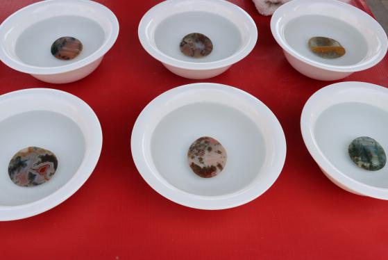 雨花石鉴赏摊位前同样人气满满,石缘雨花石鉴赏习俗传习所的展台上,白瓷碗一字排开,清水如镜,雨花石沉于碗底,精美的纹路被清水轻轻唤醒。有的黄底红纹,如江上落日;有的青白相间,似远山含黛;有的圈圈漾开,恍若蜻蜓点水。形态各异的雨花石搭配特色文创产品,吸引往来市民纷纷驻足欣赏、挑选采购。