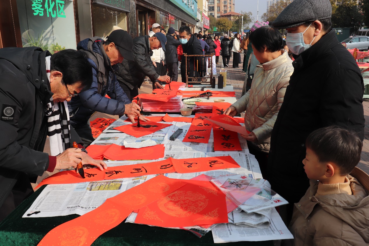 活动现场墨香阵阵、年味盎然,社区特意设置了迎春送福书写区域,志愿者们凝神挥毫、笔走龙蛇,一行行俊秀遒劲的书法、一句句寓意吉祥的春联与福字跃然纸上,承载着对新年的美好期许。老人们驻足观赏、精心挑选心仪的作品,手捧墨迹未干的春联与福字,脸上洋溢着幸福喜悦的笑容,每一笔笔墨都传递着社区对老年群体新年安康、阖家幸福的诚挚祝愿。