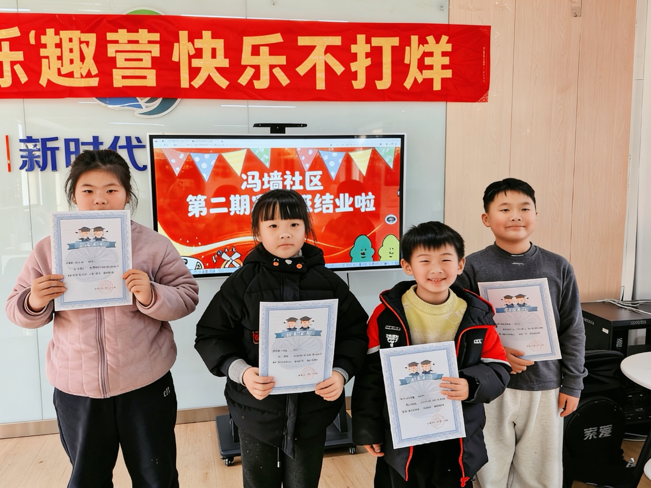 新华报业·中国江苏网讯(通讯员 顾越越)伴随着冬日暖阳与孩子们的欢声笑语,南京江北新区沿江街道冯墙社区开展的以“快乐不打烊”为主题的爱心寒托班于近日温暖落幕。为期两周的精彩之旅,不仅为辖区双职工、退役军人等家庭解决了假期看护的燃眉之急,更让孩子们在多元课程与温暖陪伴中收获了知识、友谊与成长。从非遗文化到科学探究,从生活实践到艺术启蒙,每一个精彩瞬间都定格成这个寒假最珍贵的记忆。