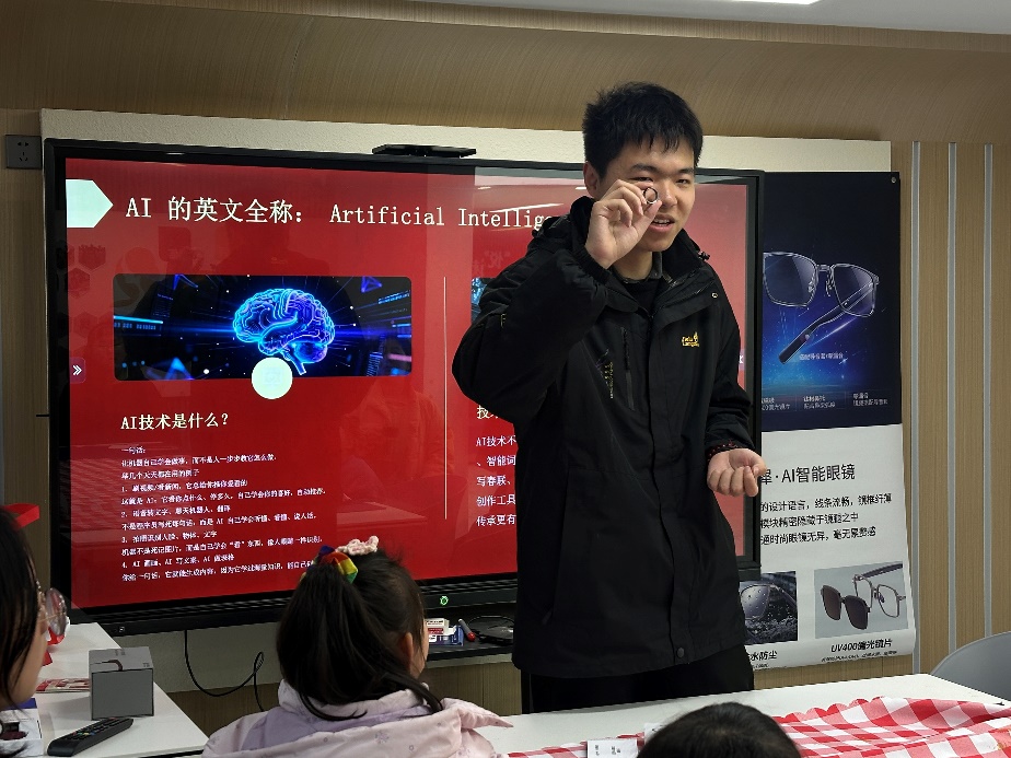 锦城社区则开启了一场“传统与创新碰撞”的元宵奇妙游。活动在全员参与的元宵手势舞中热闹开场,孩子们用欢快的舞步点燃节日氛围。随后的非遗拓印工坊中,小朋友们亲手拓印元宵主题图案,在墨香与纸韵间感受传统工艺的质朴魅力。而最让孩子们惊喜的,是“AI元宵奇妙游”环节——科技赋能的猜灯谜、智能互动的写春联,让传统文化在AI的加持下焕发出新的趣味。孩子们在惊叹与欢笑中,感受科技与传统交融的魅力,智享元宵,传承文脉。