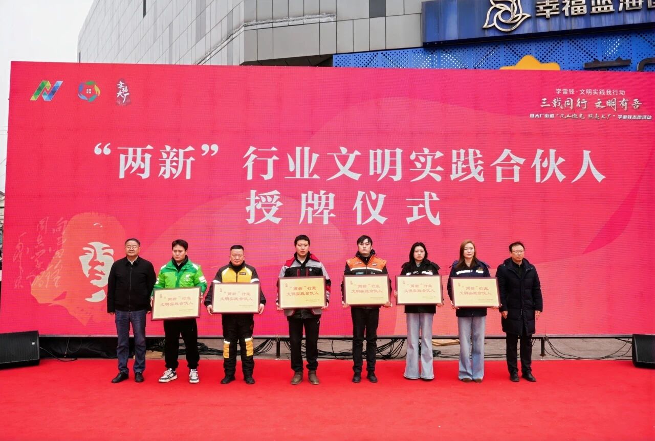 在当天的活动中,顺丰、美团、小象超市、饿了么、江苏新安物流、南京浩宇物流等“两新”领域代表接过牌匾,正式成为了大厂街道的“文明实践合伙人”。