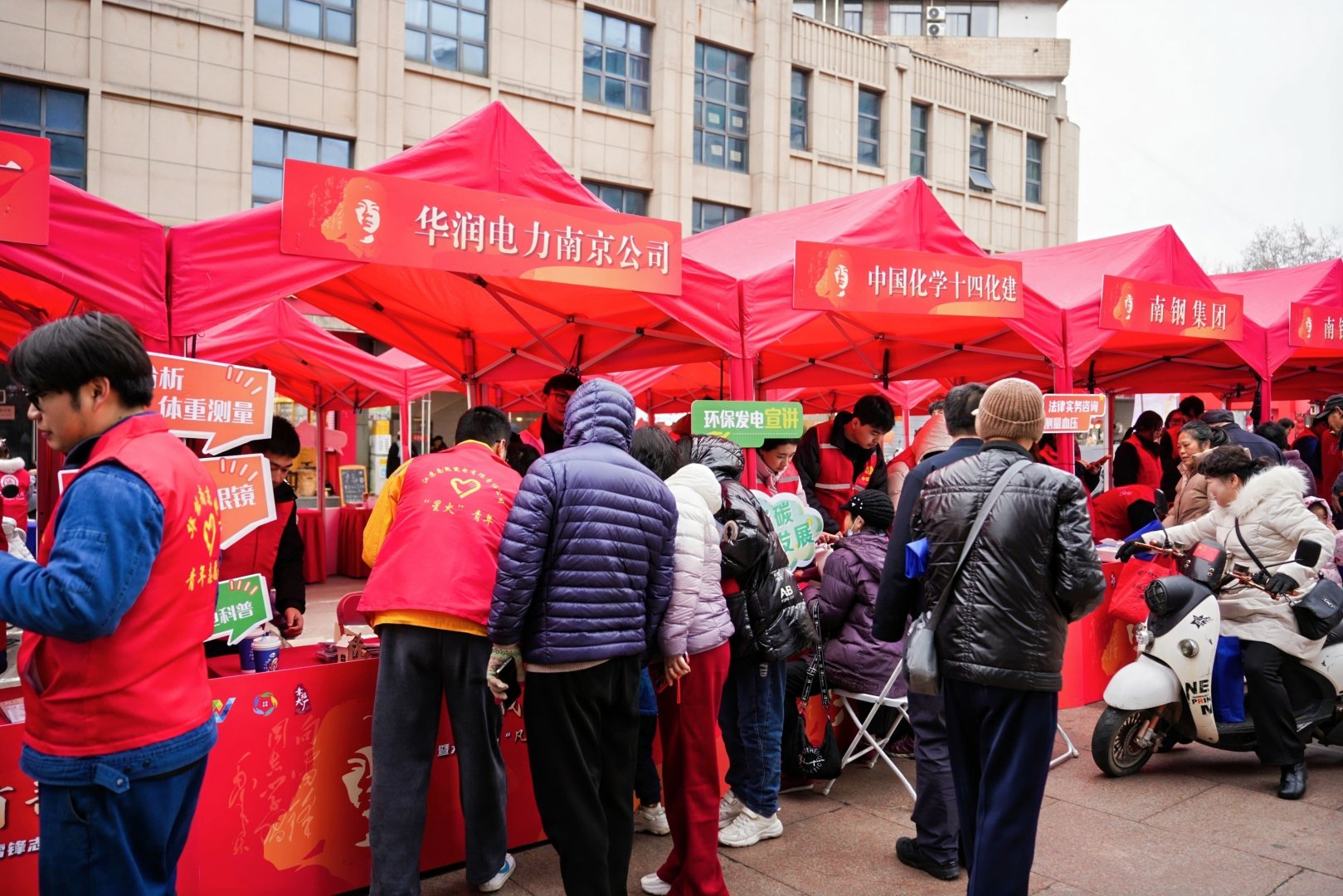 活动现场,扬子石化、南化公司、南钢集团、十四化建、华润电力南京公司、华能南京电厂、扬子工程公司、扬子信息公司、南京江北医院等各企事业单位也带来了实实在在的志愿服务项目。义诊台前,医生们耐心地为老人测量血压、解答健康疑惑,眼神里满是关切;理发摊旁,志愿者手中的剪刀上下翻飞,为居民理出清爽精干的新发型;还有法律咨询、磨刀修伞、亲子手工等摊位……处处洋溢着互助的暖流。这些看似平常的服务,正是企业力量融入基层治理、产业资源反哺社区生活的生动缩影。