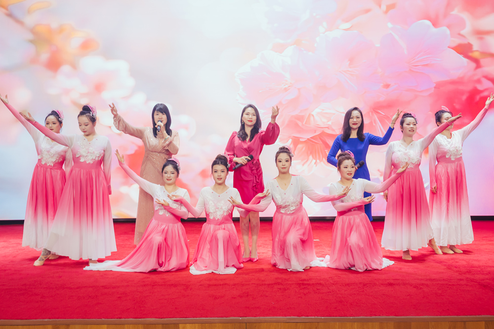 歌伴舞《花开中国》将现场气氛推向第一个高潮。大厂街道巾帼志愿者携手十四化建职工,用悠扬的旋律与灵动的舞姿,唱响了新时代女性与党同心、与国同行的铿锵誓言。舞台上的她们,正如歌中所唱,在广阔天地中描绘着属于自己的秀美画卷。