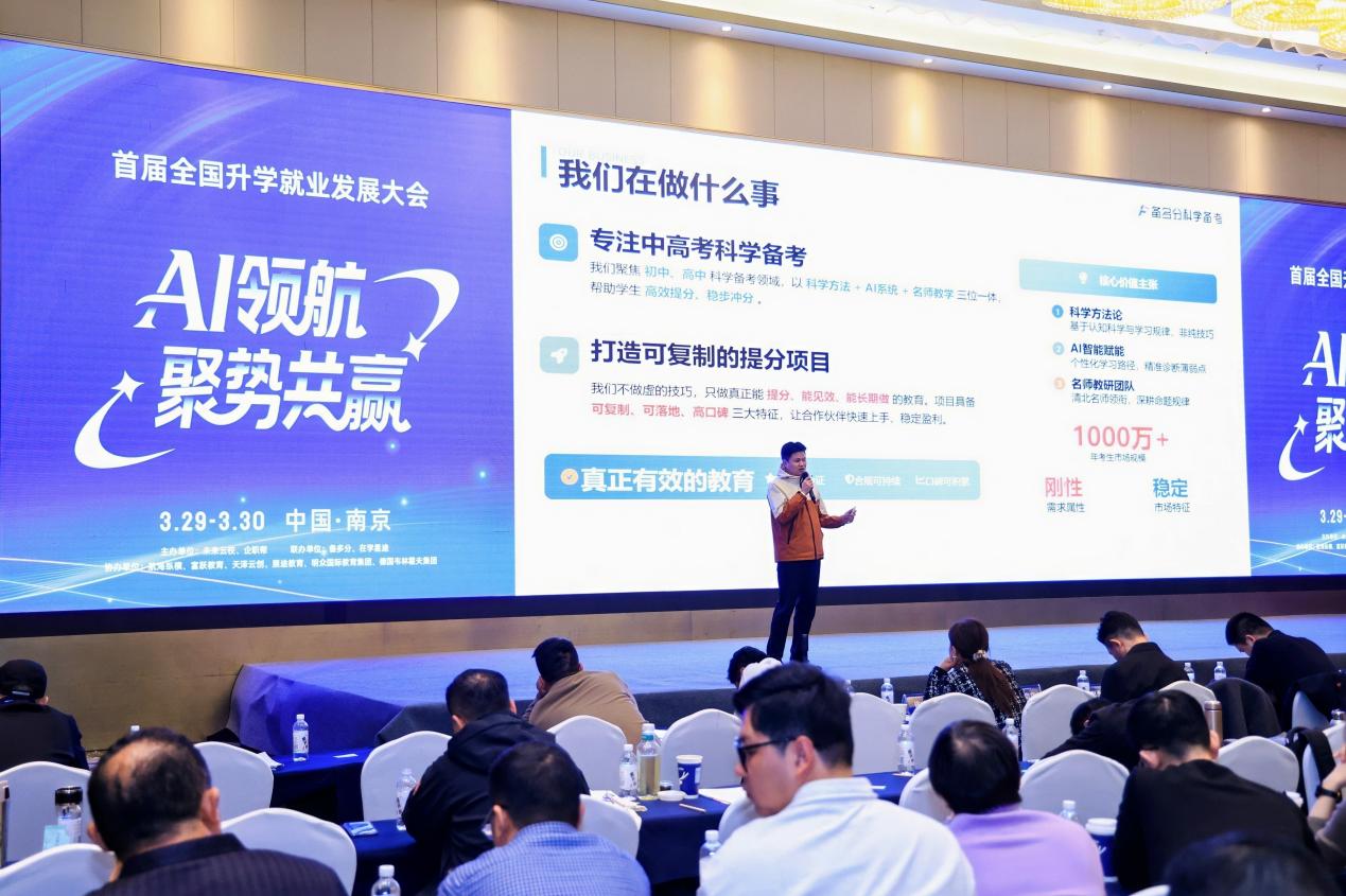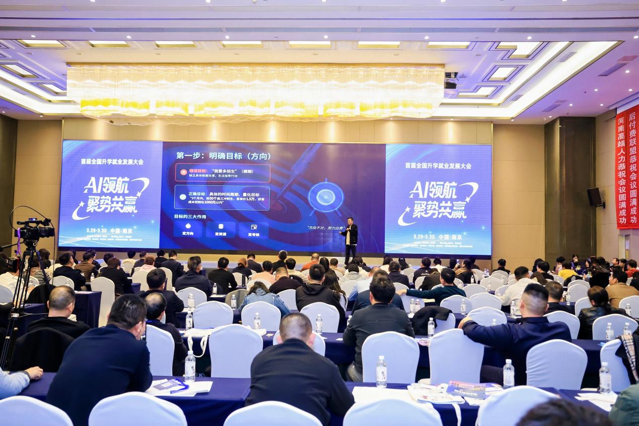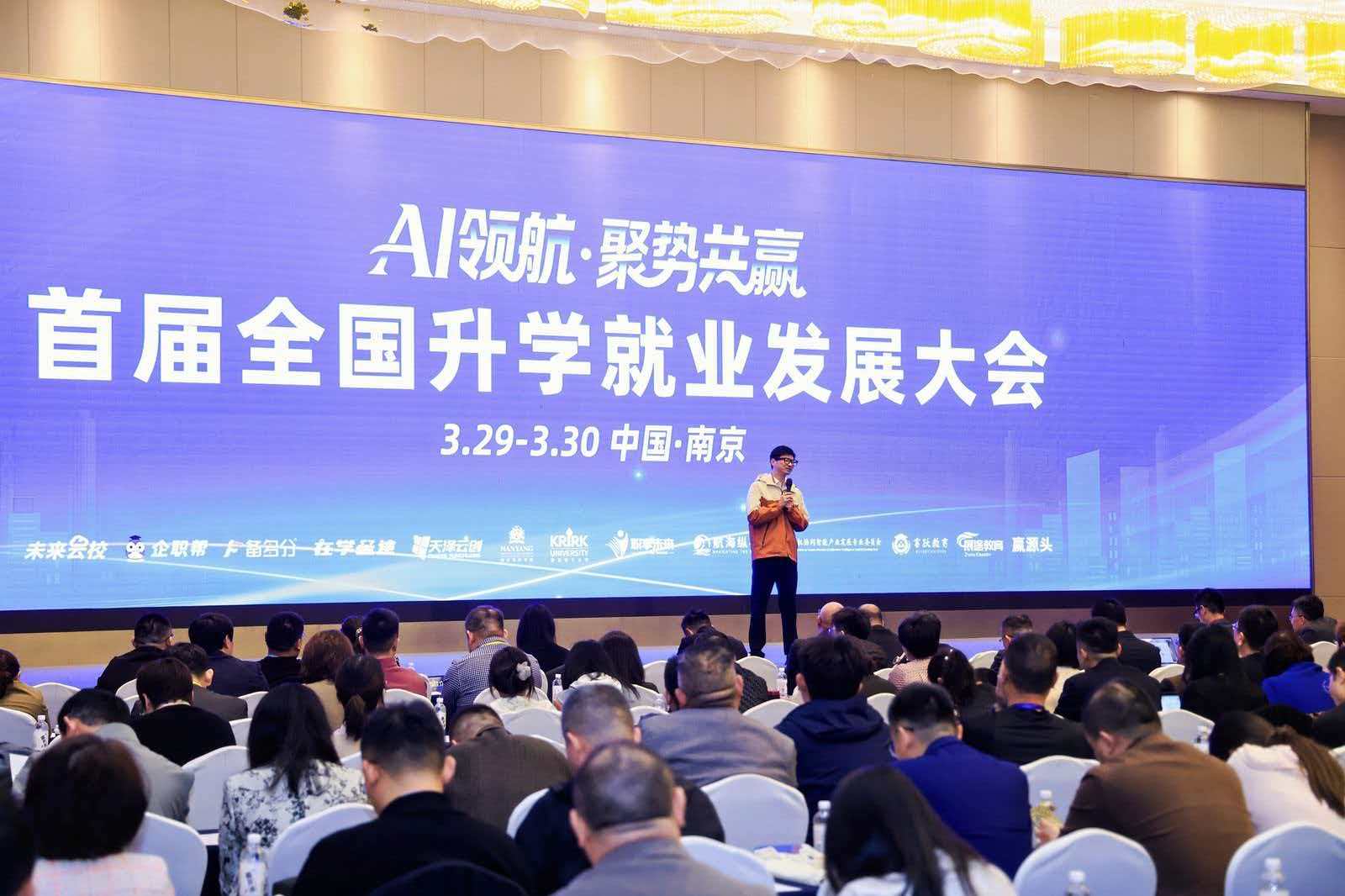 2026年3月29日至30日,以“AI领航·聚势共赢”为主题的首届全国升学就业发展大会在南京举办。本次大会以“聚资源、助升学、促就业、赢未来”为核心宗旨,汇聚了全国升学就业、AI教育、职业培训等领域的行业专家、机构代表与企业负责人,聚焦AI技术与教育行业的深度融合,拆解教培机构转型实战路径,搭建优质资源精准对接平台,为升学就业全链路高质量发展探寻新方向。