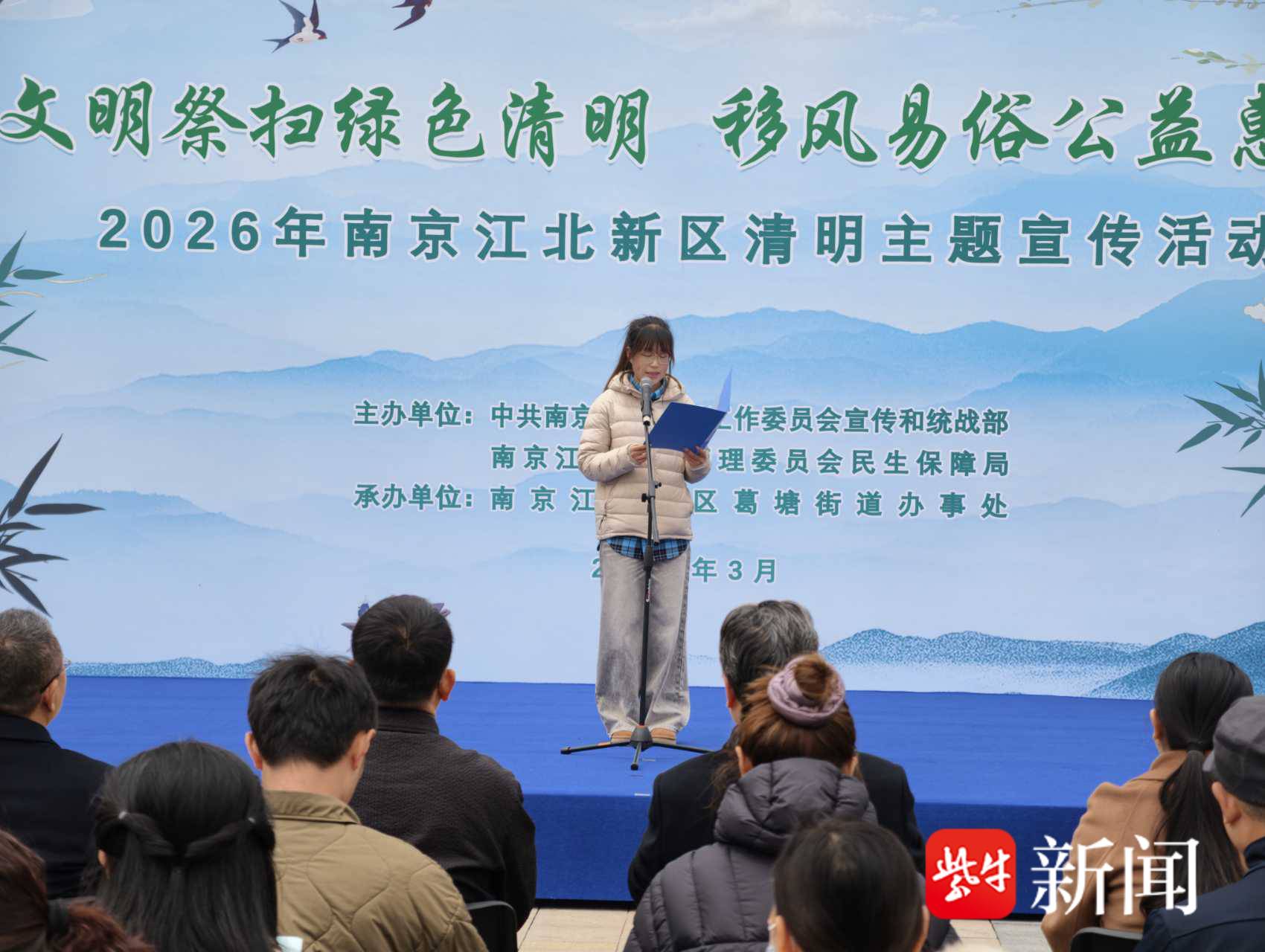 精心策划实践活动,让文明新风落地生根。新区将抽象理念转化为具体行动,通过群众喜闻乐见的形式让文明新风入脑入心。3月19日,新区宣传和统战部、民生保障局在汤泉街道、葛塘街道举办两场清明主题宣传活动,通过宣读倡议书、文明祭扫签名、知识问答以及融入绿色殡葬理念的文艺表演,增进群众理解与认同。4月1日,“文明有吾祭英烈,移风易俗树新风”主题活动在浦口革命烈士纪念碑广场举行,通过默哀缅怀、敬献花篮、主题朗诵和微宣讲,倡导在追思先烈的同时践行文明祭扫新风尚。