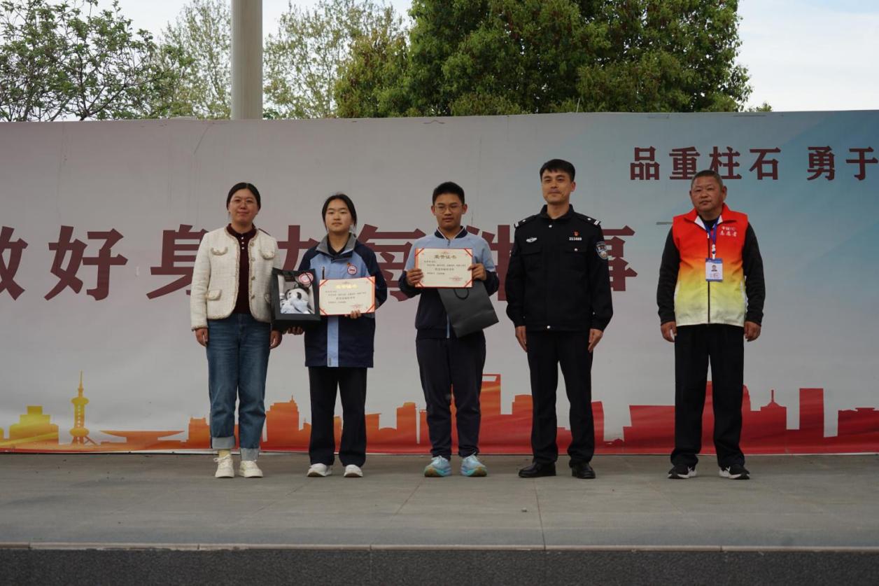 为弘扬拾金不昧的传统美德,顶山派出所专程走进浦厂中学,在全校师生集会上为两位同学举办了表彰仪式。杨启繁警官与杨洋校长共同为毛梓轩、杨佳悦颁发了“拾金不昧好少年”奖状及纪念品,现场号召全体同学以两位少年为榜样,从身边小事做起,争做诚实守信、崇德向善的新时代好少年。现场掌声热烈,两位同学的暖心事迹深深感染了在场的每一位师生。