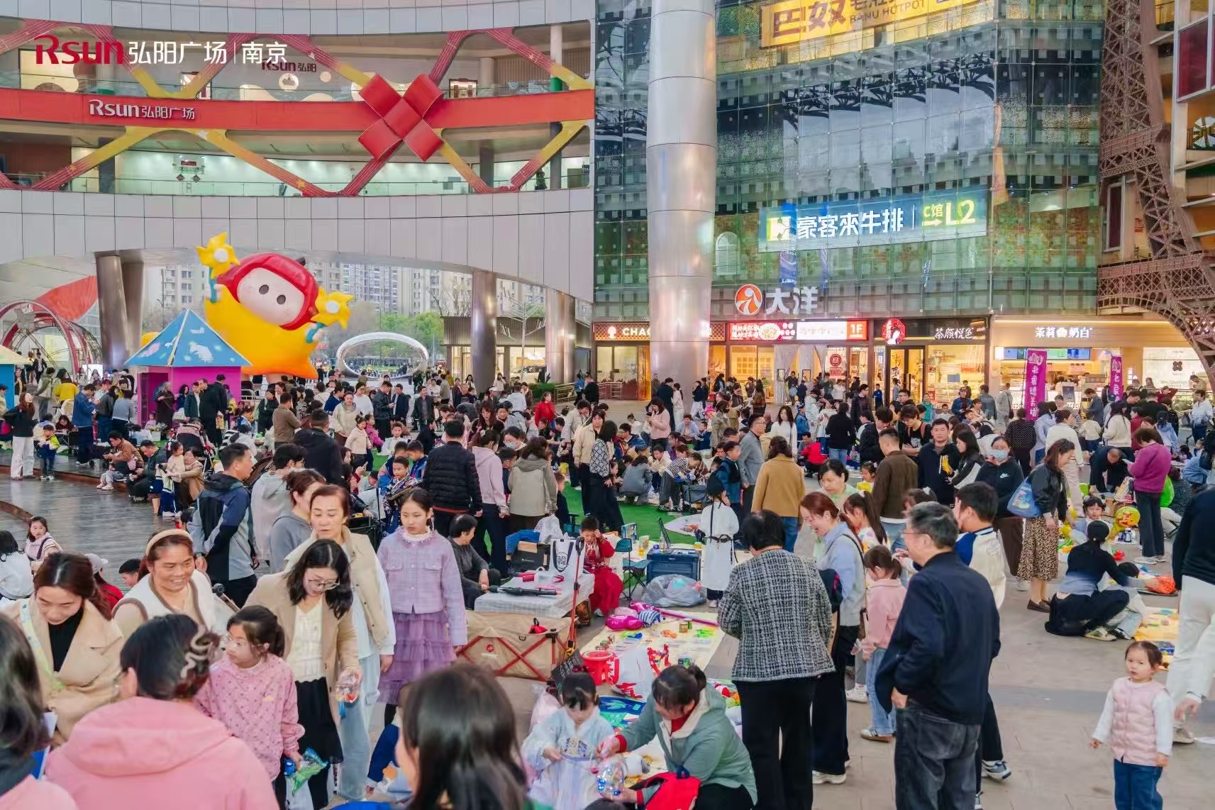 假日期间,桥北商圈凭“首展+首店”成功出圈。4月3日,8米高的巨型YOYO展在弘阳广场中心秀场亮相——这是该IP在江苏的首次展出。萌趣造型瞬间引爆打卡潮,全网话题讨论量突破百万。