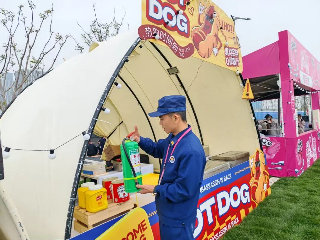 公安民警辅警驻守舞台、出入口等人流密集区,不间断巡逻、疏导人流、处置求助,守护观众人身财产安全;5 个保洁点位及时清扫消杀,维持现场整洁;2 个食品安全保障点严格核查商户资质,守护舌尖安全;供电、通信团队 24 小时值守,保障舞台设备与网络信号稳定运行。身穿蓝色马甲的志愿者遍布各区域,提供细致引导与暖心服务,成为现场一道动人风景线。