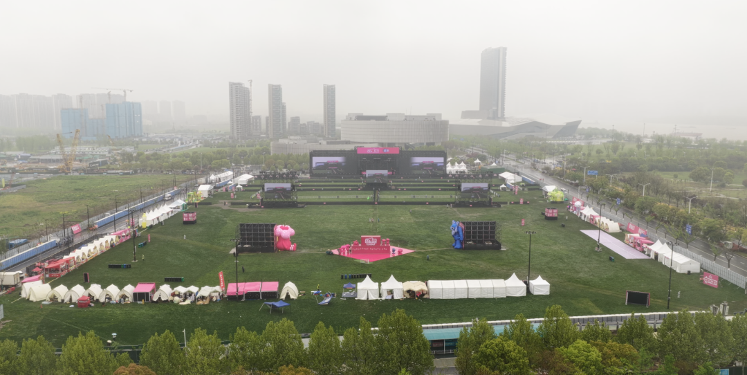 本次音乐嘉年华选址南京江北新区核心区域,毗邻长江岸线,区位优势得天独厚。尽管活动期间偶遇春雨,但丝毫未影响现场氛围。舞台上,歌手们或轻吟浅唱,用温柔旋律治愈人心;或激情高歌,以经典曲目点燃全场,不同风格的音乐交织碰撞,为乐迷带来极致的视听盛宴。舞台下,五颜六色的雨衣与闪烁的灯光交相辉映,数万观众齐声合唱、尽情摇摆,雨声、歌声、欢呼声交织,在长江之畔谱写出别样的音乐风情,让这场雨中盛宴更显独特与浪漫。