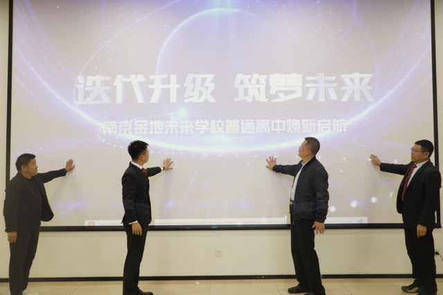 发布会尾声,吴昊理事长、周俊书记、邵辉理事、朱锦华校长共同登台启动焕新仪式,标志着南京金地未来学校普通高中正式以全新姿态启航。据悉,南京金地未来学校坐落于南京江北新区,是江苏省首批唯一入选教育部未来智慧校园研究中心的联盟学校,此次焕新将进一步拓宽优质教育覆盖面,为南京家长提供更放心、安心、省心的高中选择。