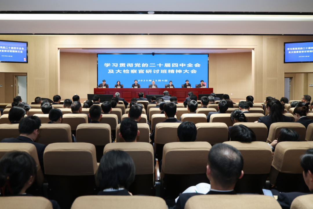 在前期两次召开党组(扩大)会议传达学习的基础上,11月4日上午,省检察院召开学习贯彻党的二十届四中全会及大检察官研讨班精神大会,深入学习贯彻党的二十届四中全会精神,全面落实省委要求和大检察官研讨班部署,结合江苏检察实际研究部署贯彻落实举措,动员全省检察机关依法履职、全面履职、勇于担当,以高质效履职更好服务保障中国式现代化江苏新实践。省检察院党组书记、检察长赵铁实出席会议并讲话。省检察院党组副书记、副检察长李爱君主持会议。